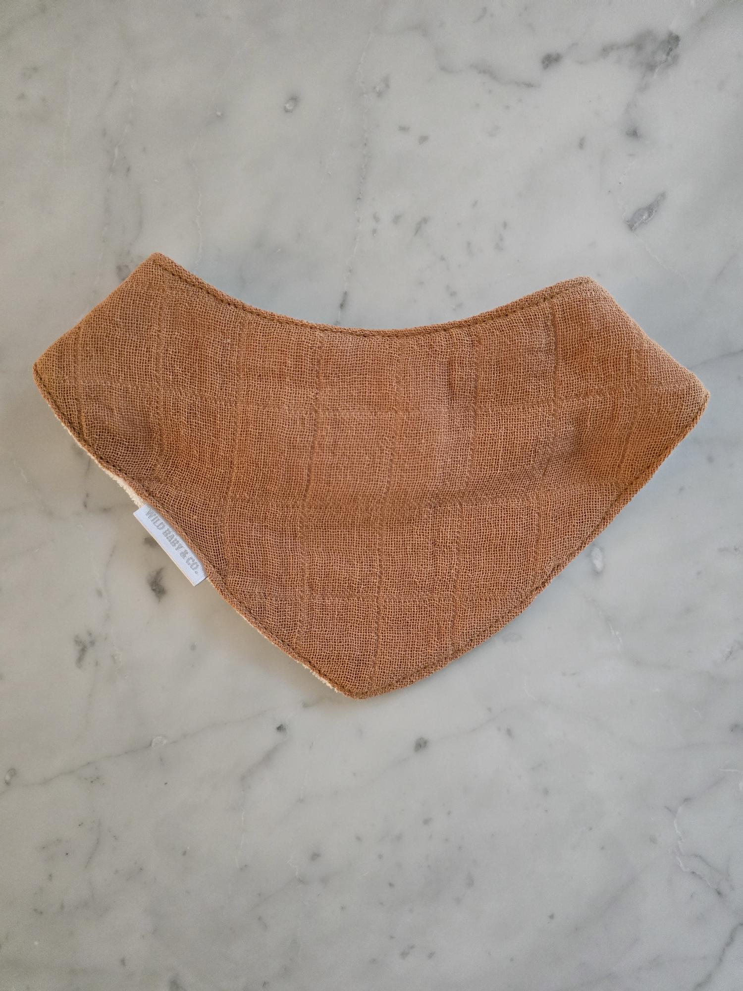 Nuestro hermoso babero tipo bandana está confeccionado en gasa doble de hilo 100% algodón, con un reverso de towel ultra absorbente, ideal para mantener la piel de tu bebé seca y protegida.