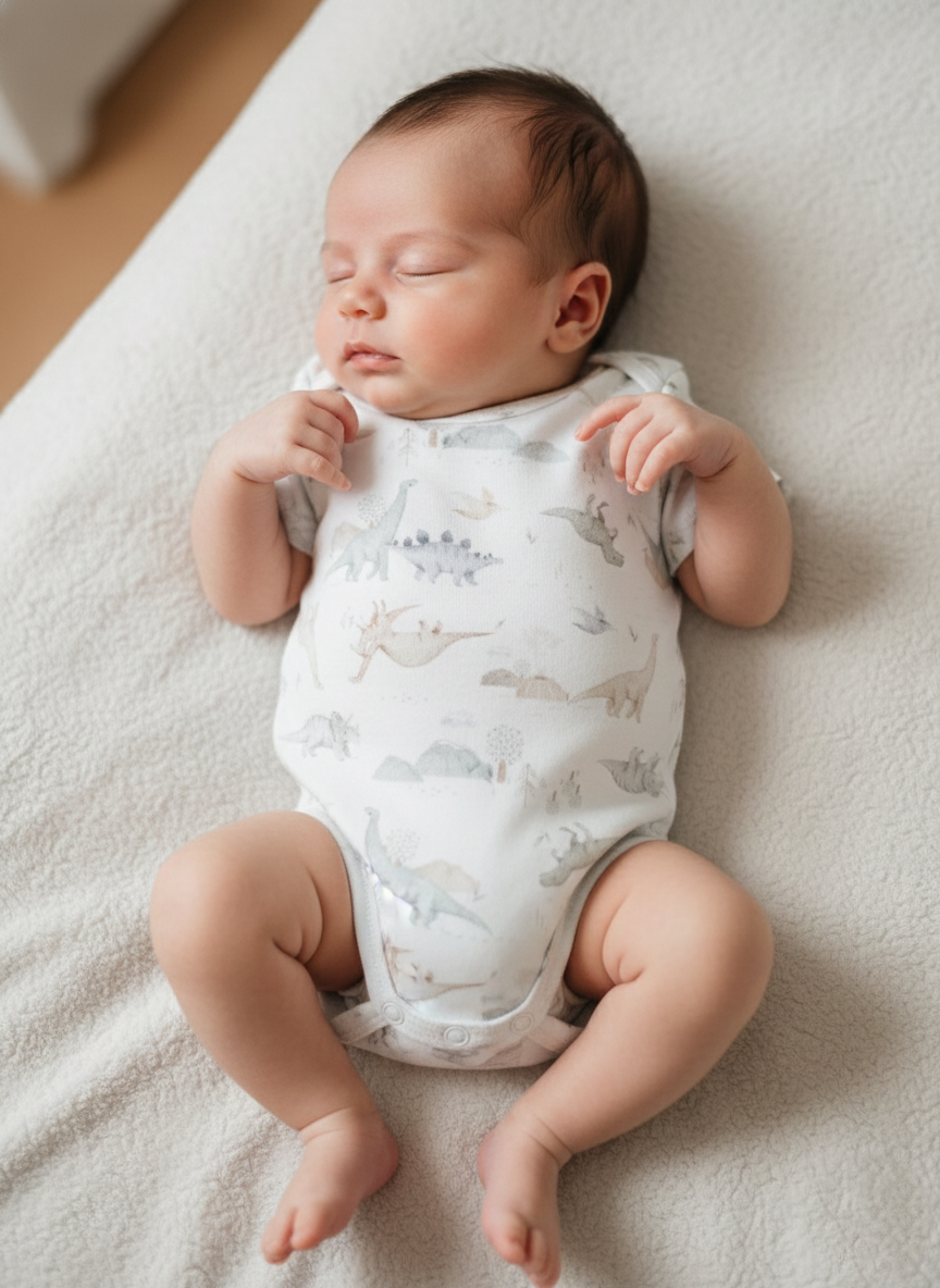 Confeccionado en algodón Pima, un tejido delicado, respirable e hipoalergénico que cuida la piel desde el primer día. Incluye hombro cruzado para vestir con facilidad y broches en la entrepierna para un cambio práctico y cómodo.