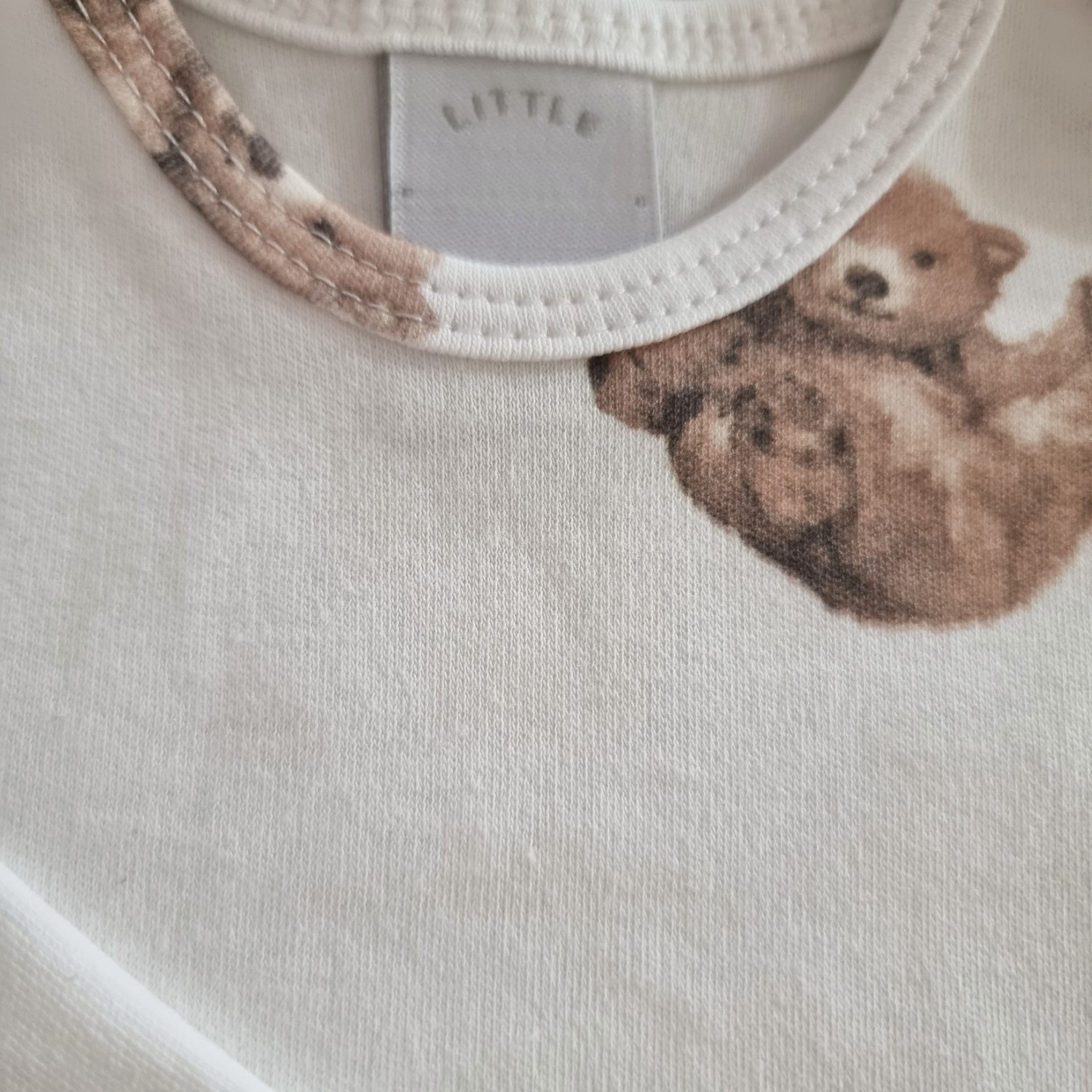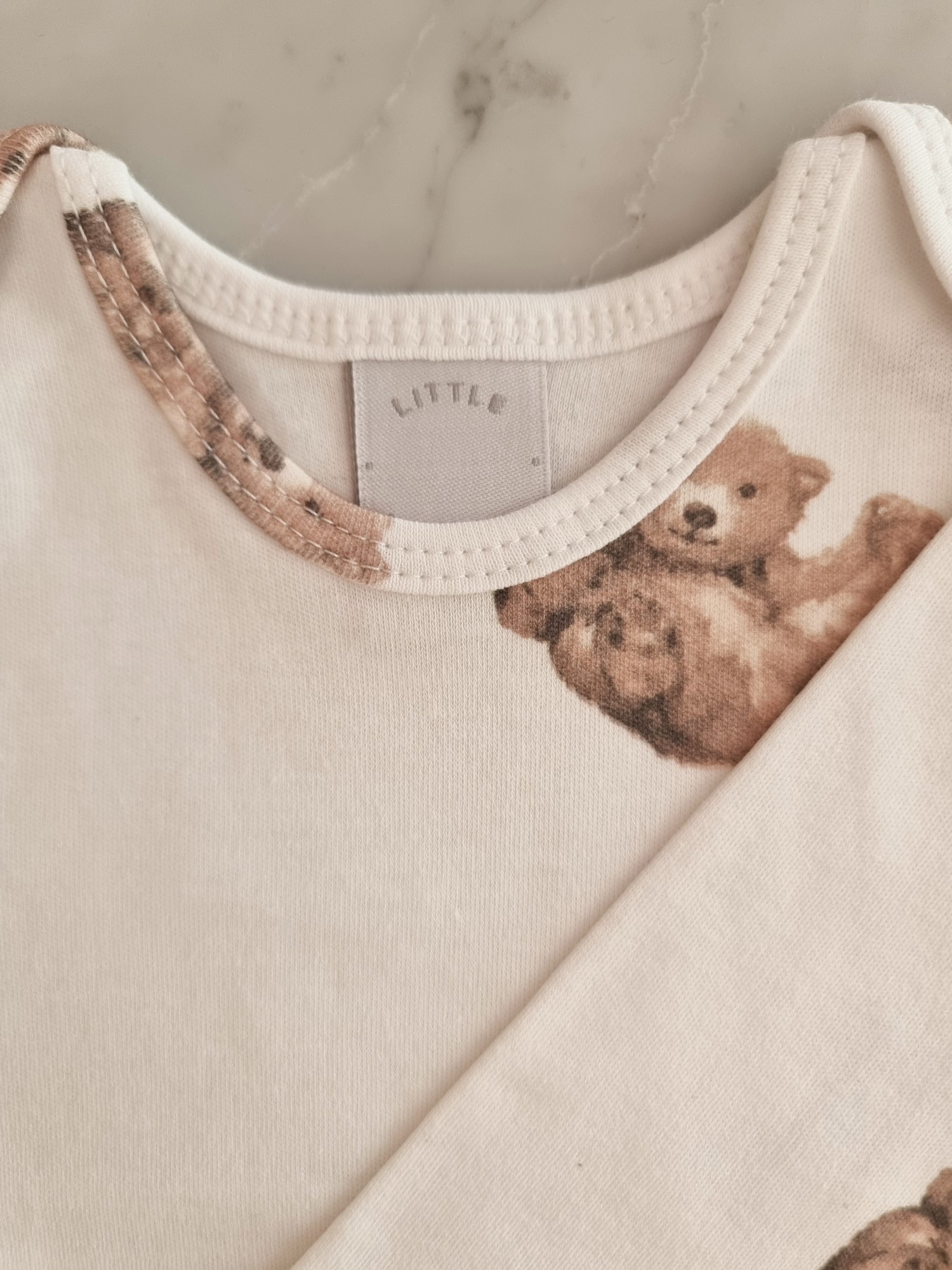 Confeccionado en suave y delicado algodón Pima, este body estampado de mangas cortas es ideal para cuidar la piel sensible del bebé 💛. Su práctico diseño con cuello americano y broches en la entrepierna facilita el cambio de pañal