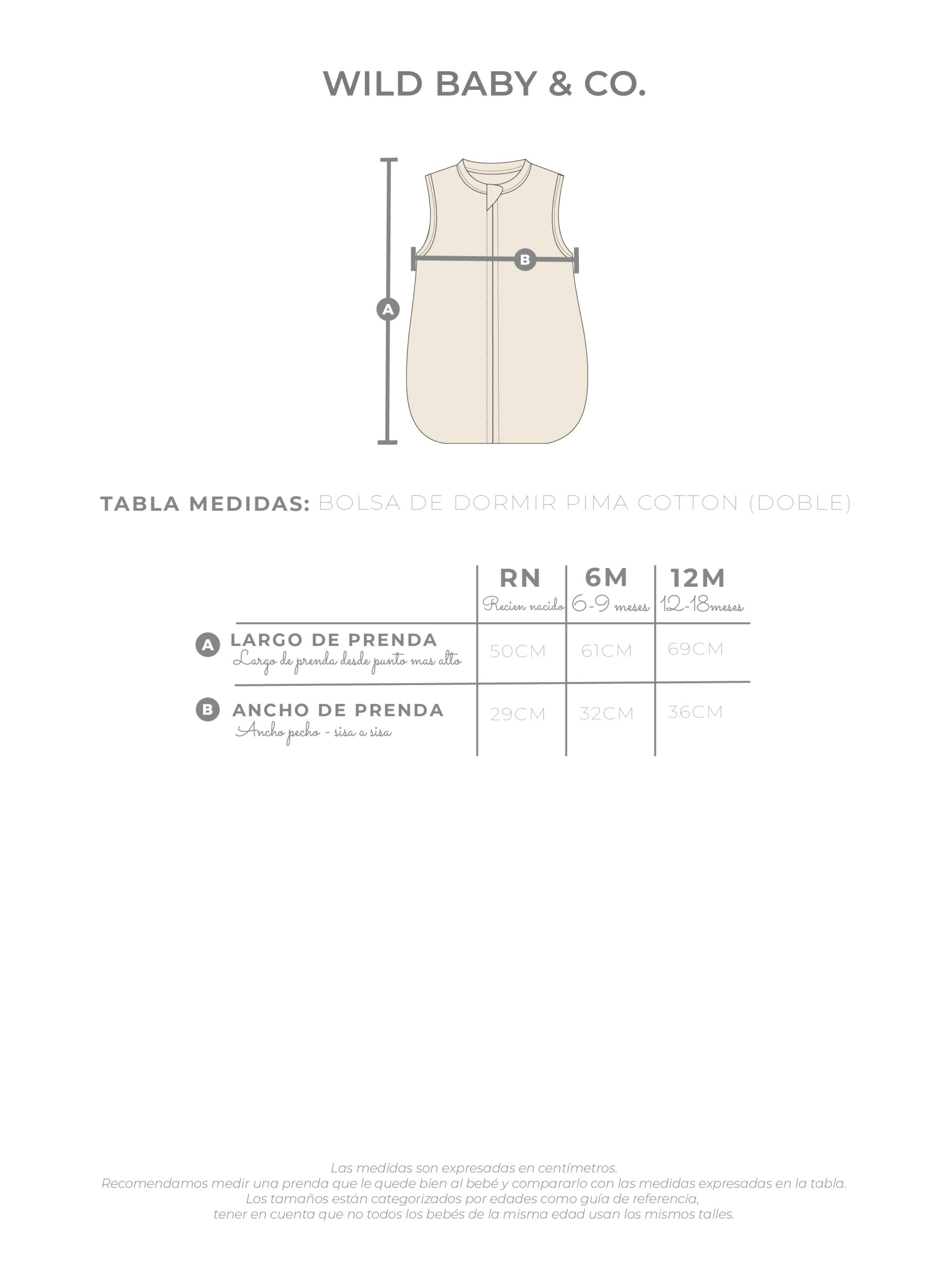 Bolsa/saco de dormir confeccionada en algodón pima 100% doble (en su interior y su exterior).