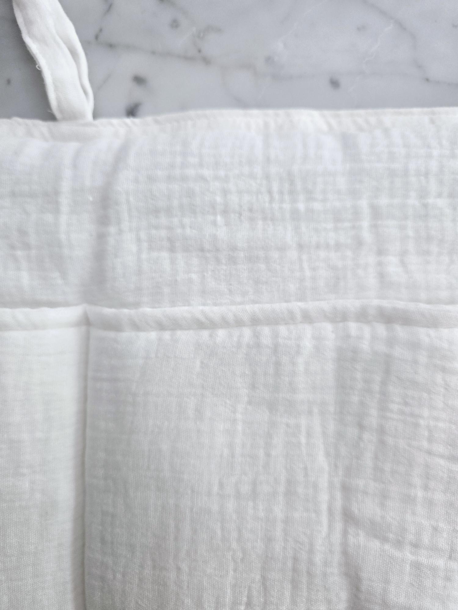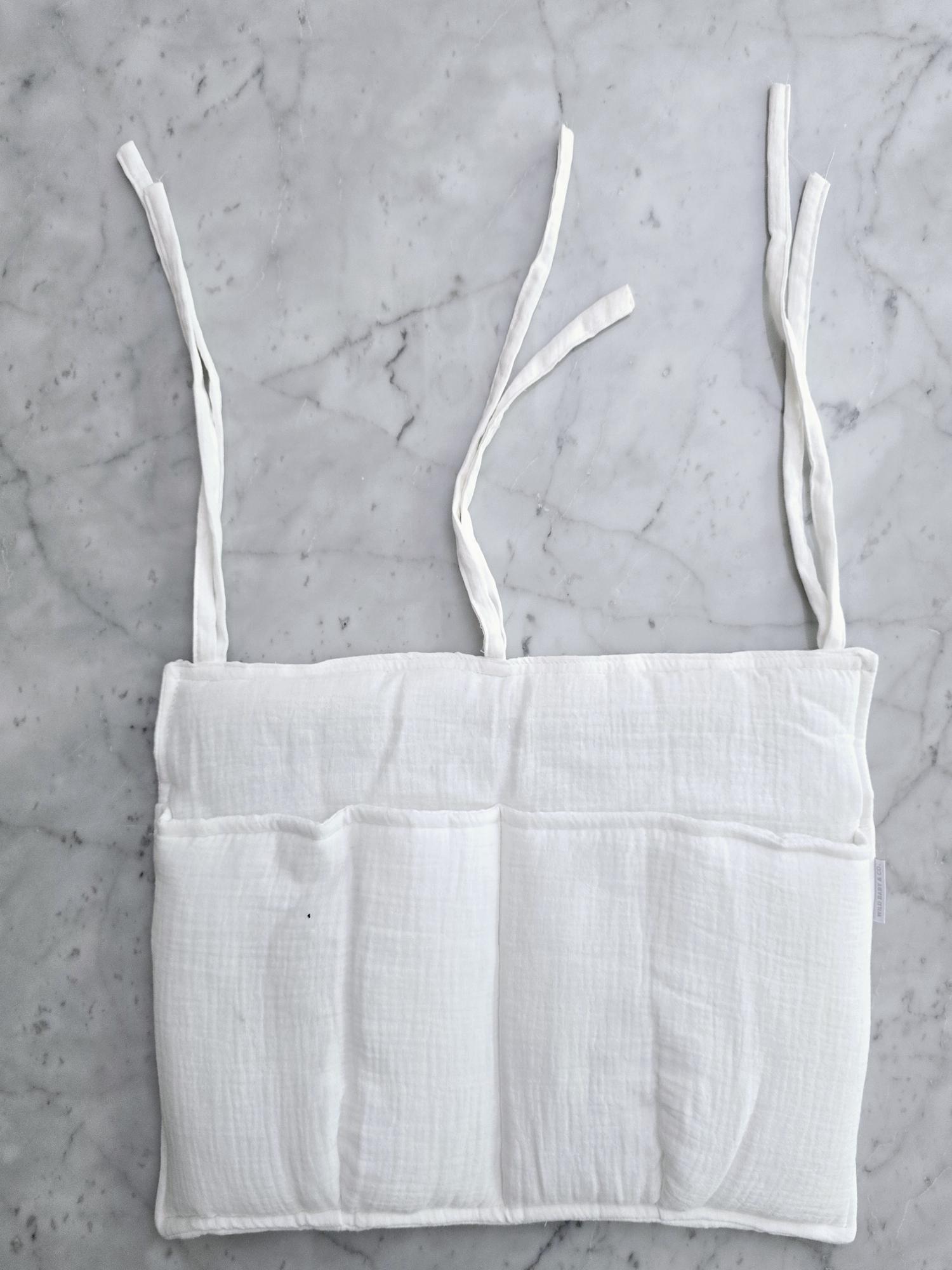 Cuenta con dos bolsillos amplios y flexibles, y tiras de ajuste para sujetarlo fácilmente a la cuna o donde lo necesites.