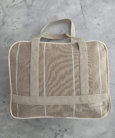 • Interior forrado en tela impermeable, fácil de limpiar, con dos bolsillos elásticos laterales para organizar lo esencial.