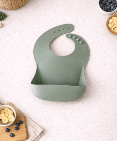 Fabricado en silicona grado alimenticio, es libre de BPA y ftalatos, seguro para el contacto con alimentos y apto para el uso diario. Su base con ventosa antivuelco permite fijarlo a la mesa o a la bandeja de la silla, ayudando a evitar deslizamientos y caídas durante la comida.