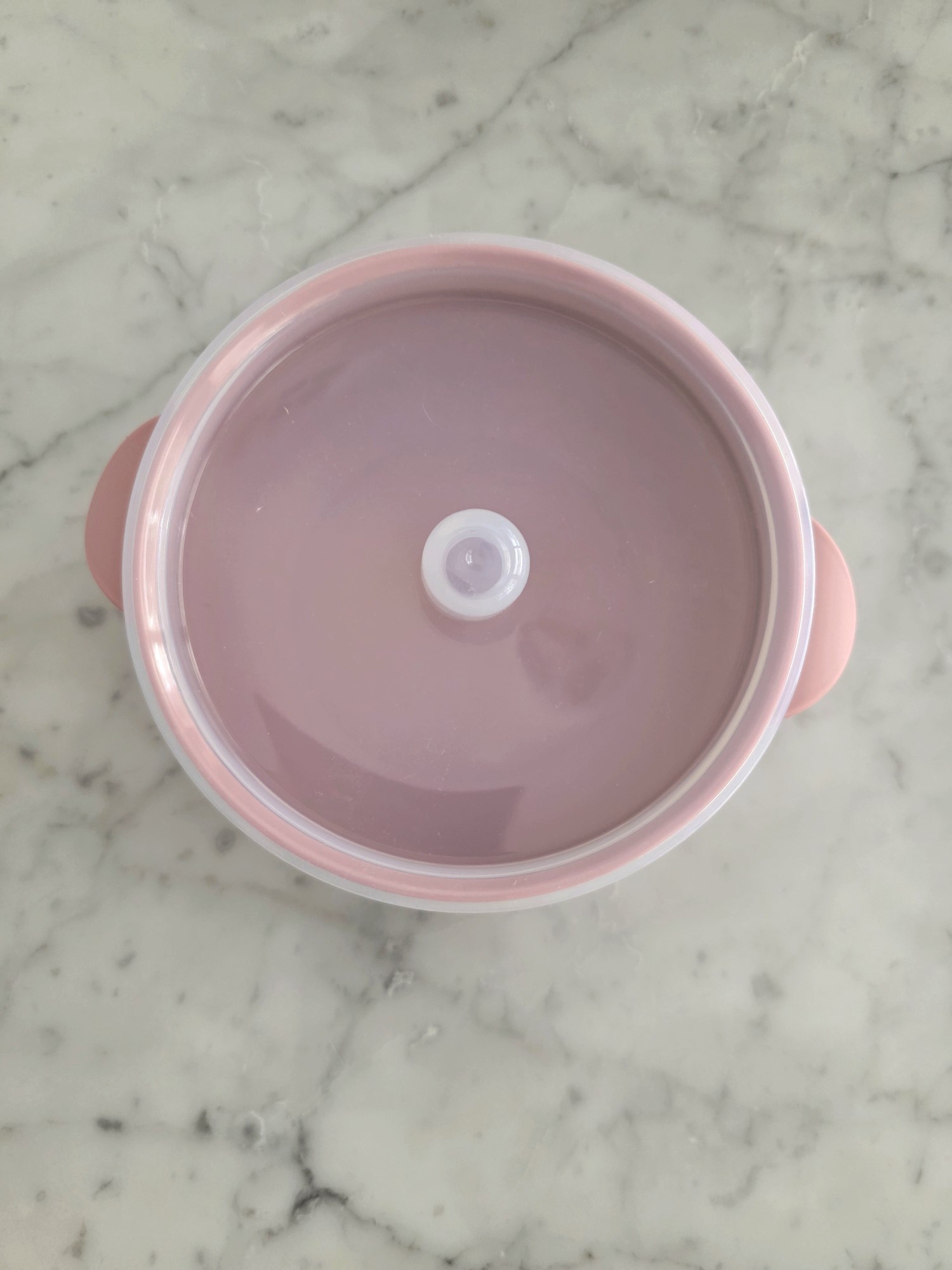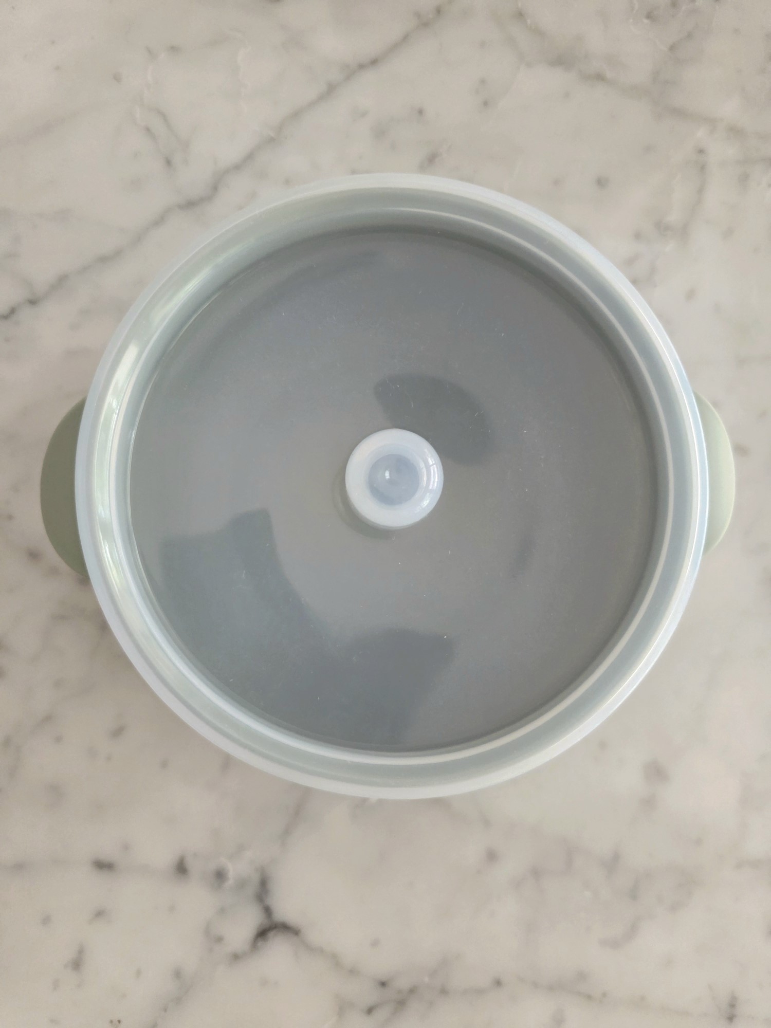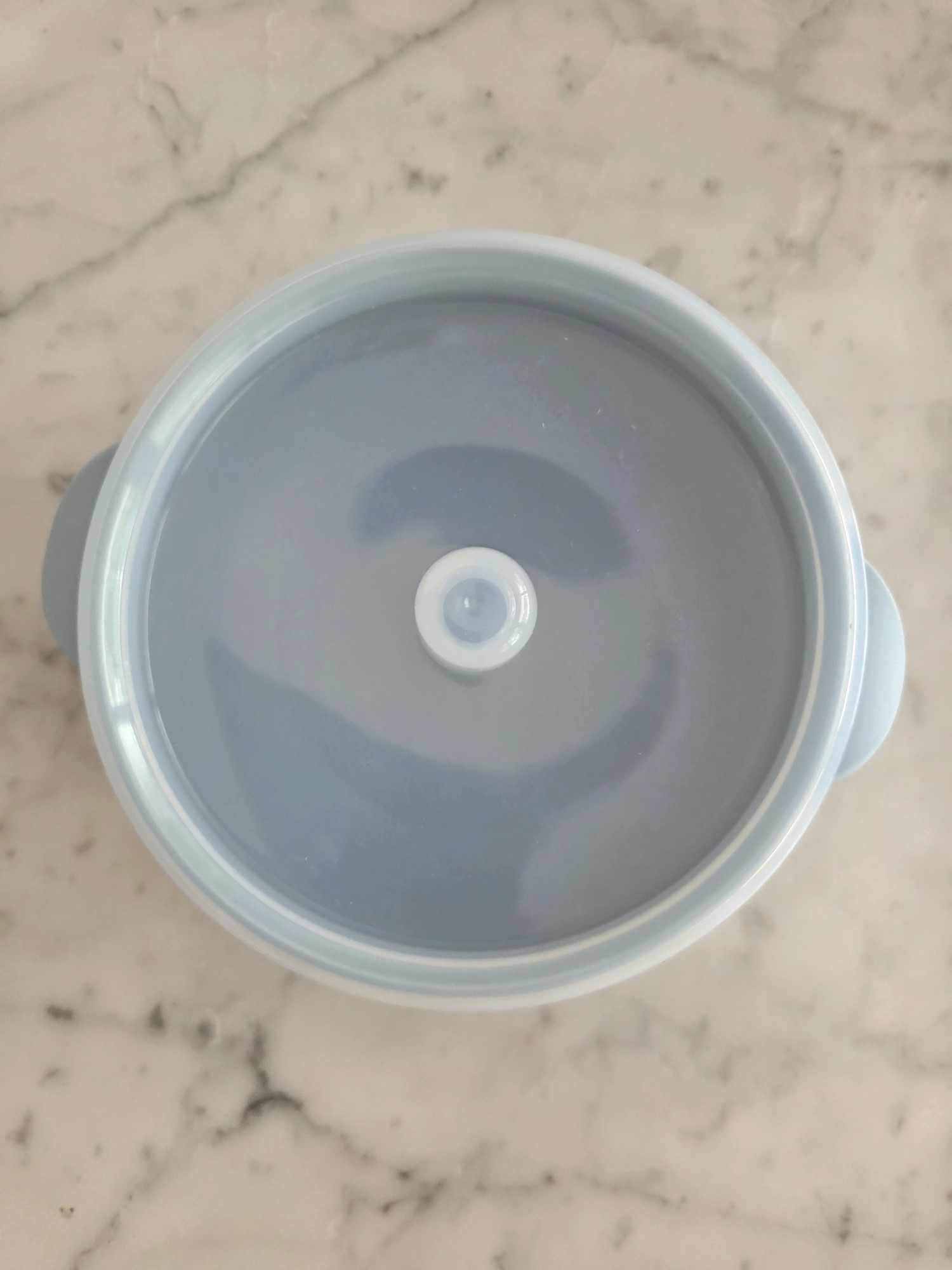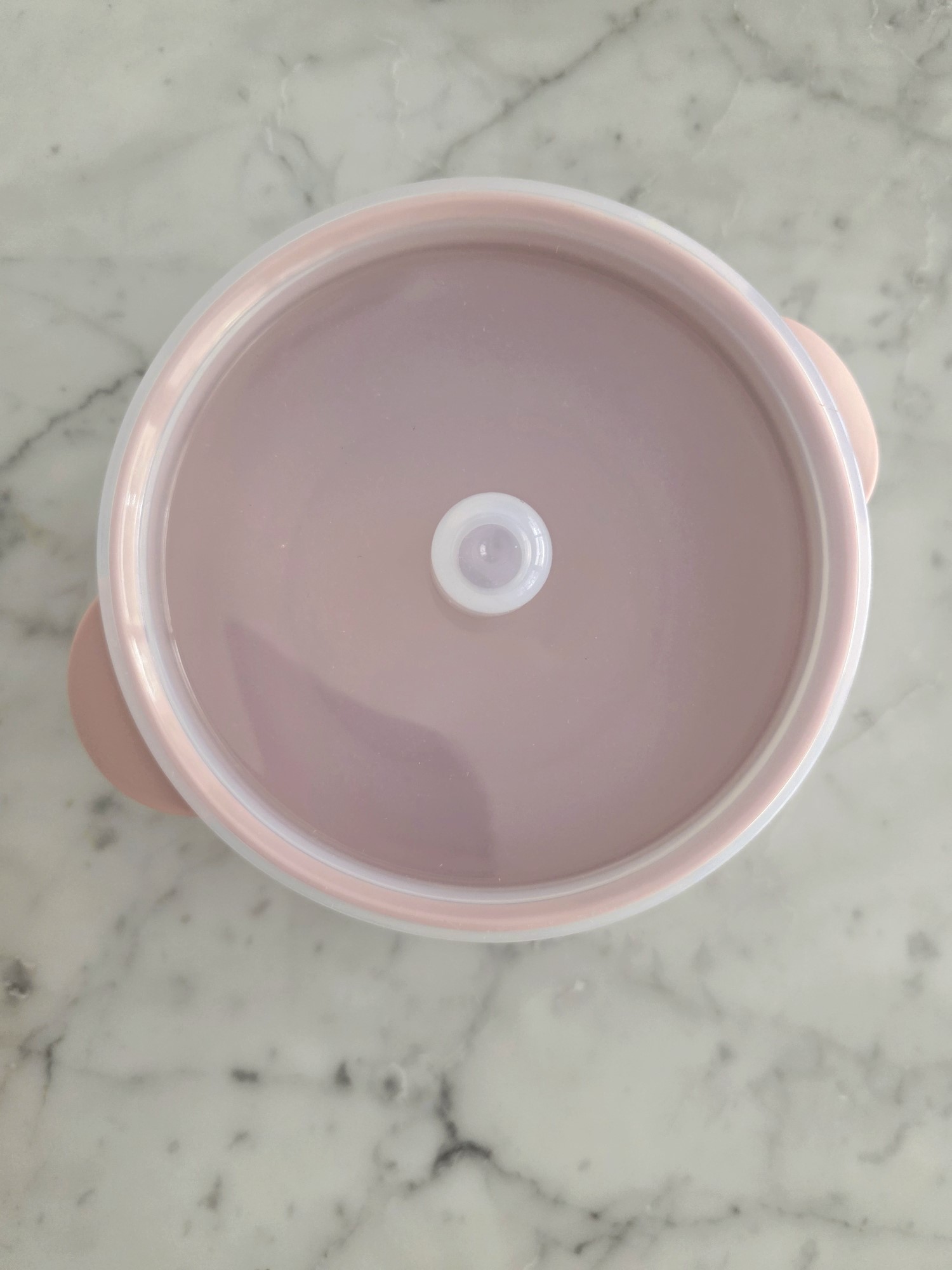 Bowl de silicona antivuelco con tapa, diseñado especialmente para acompañar las comidas del bebé con practicidad, seguridad y estética.