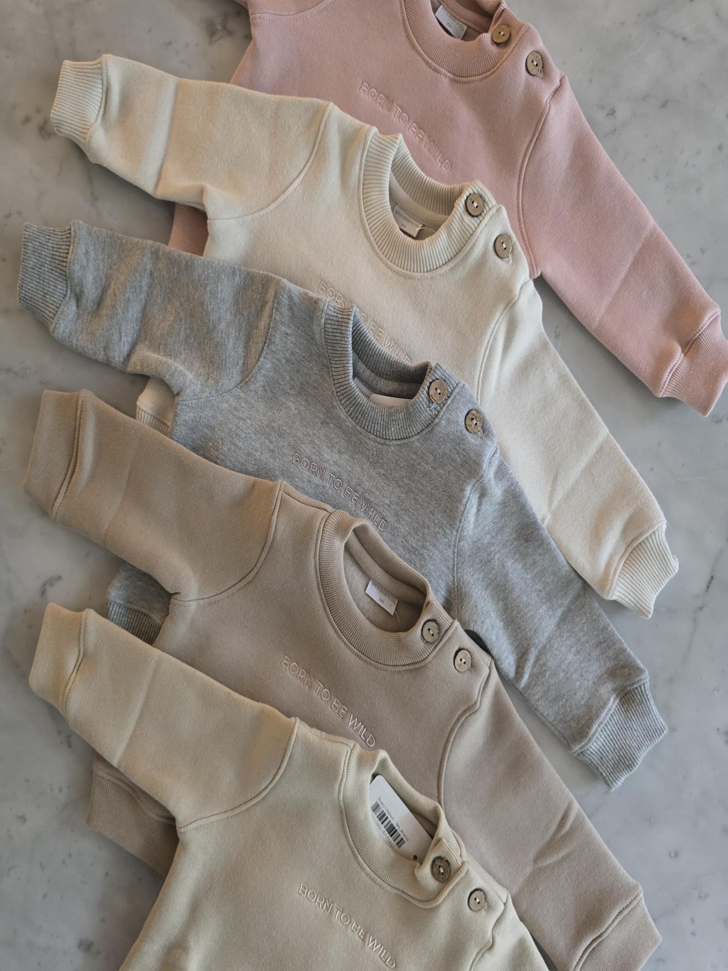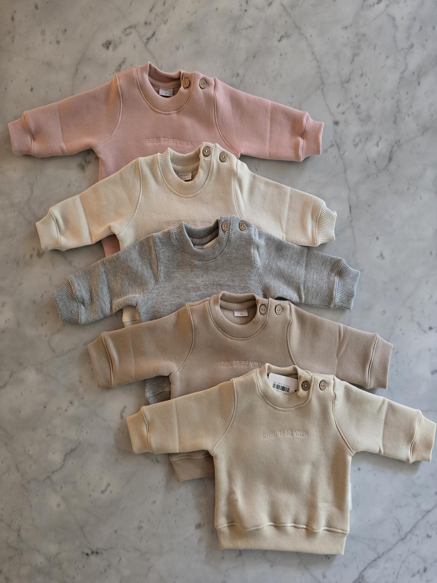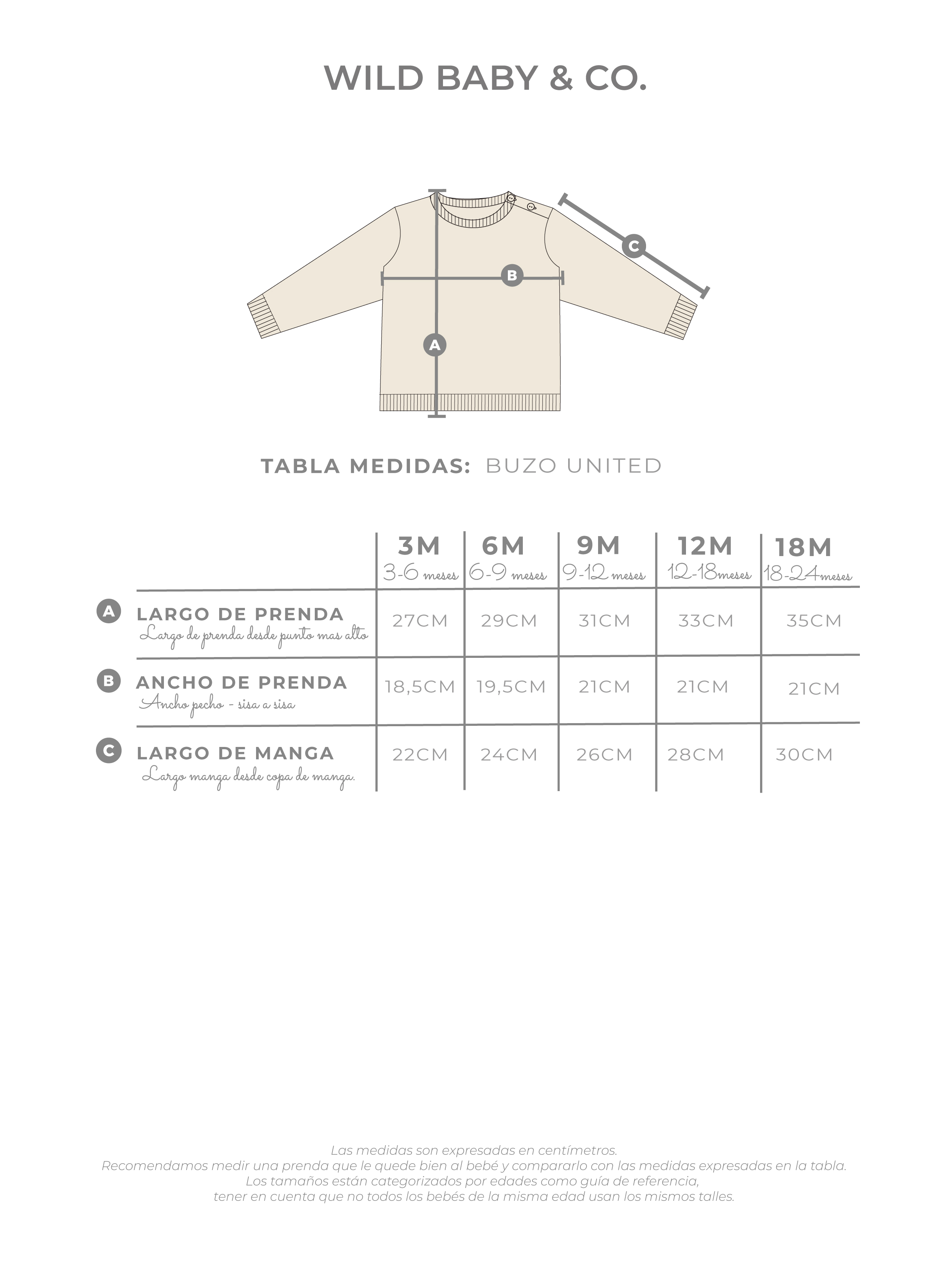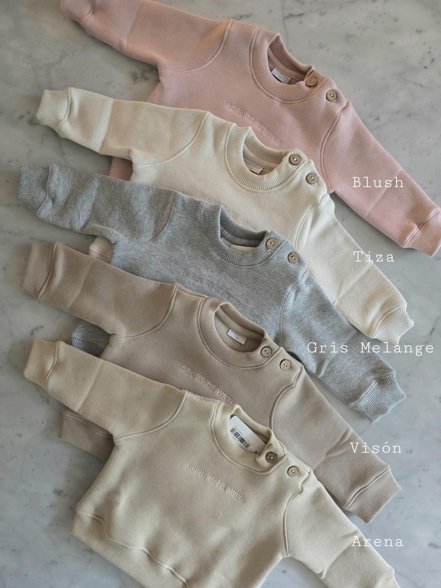 Buzo con cuello redondo y manga larga. Confeccionado en frisa 100% algodón, super suave y abrigada.