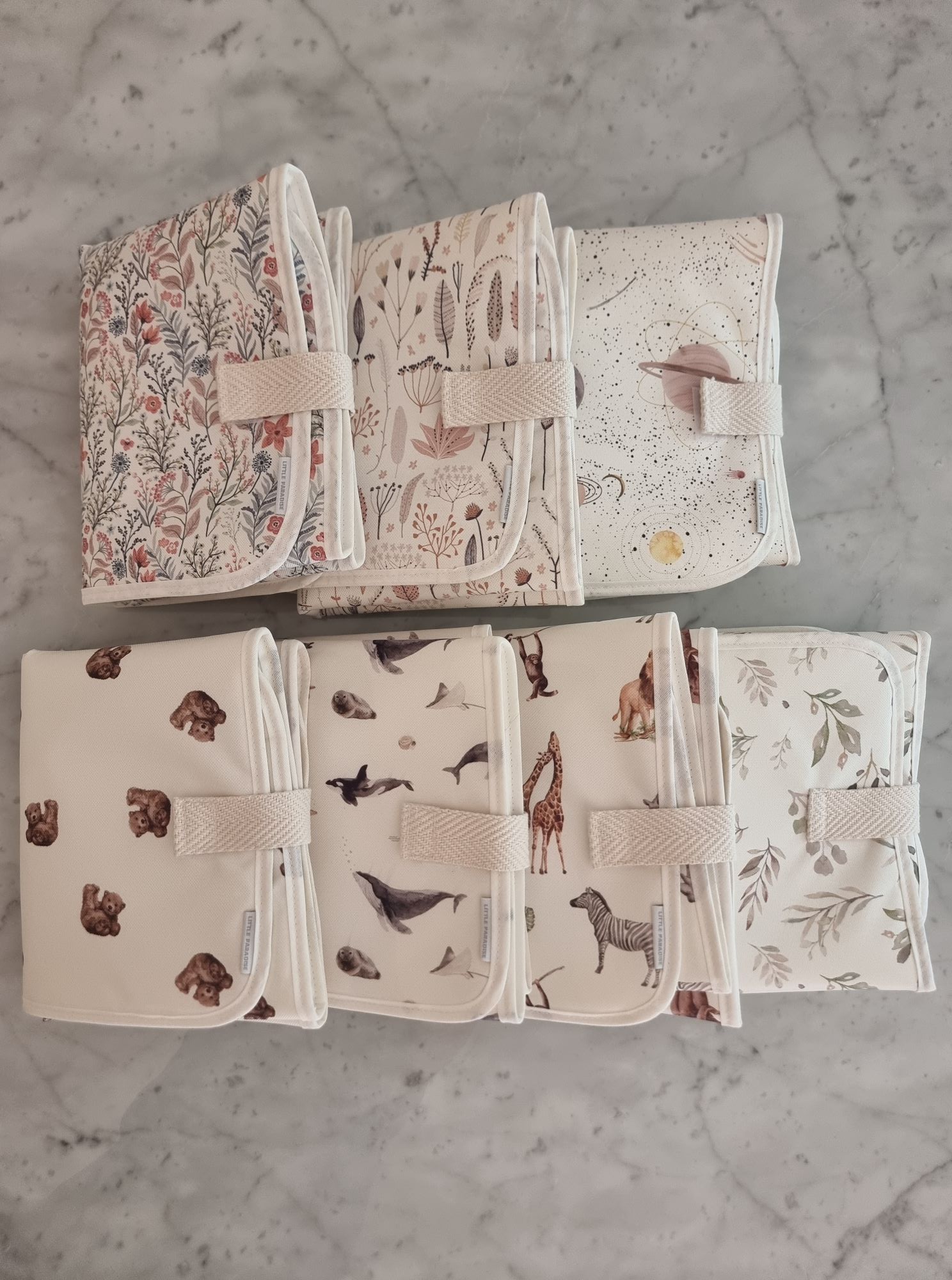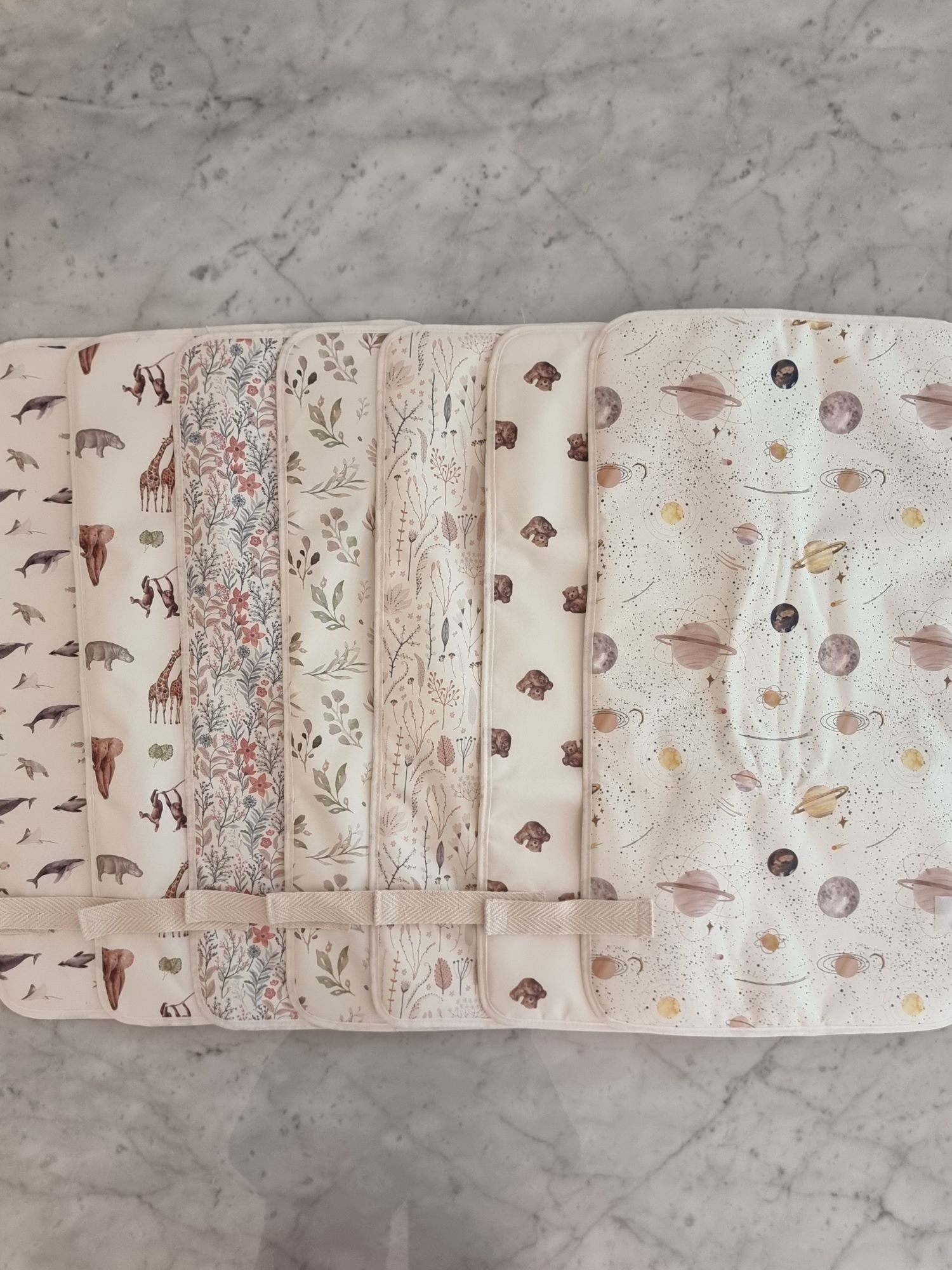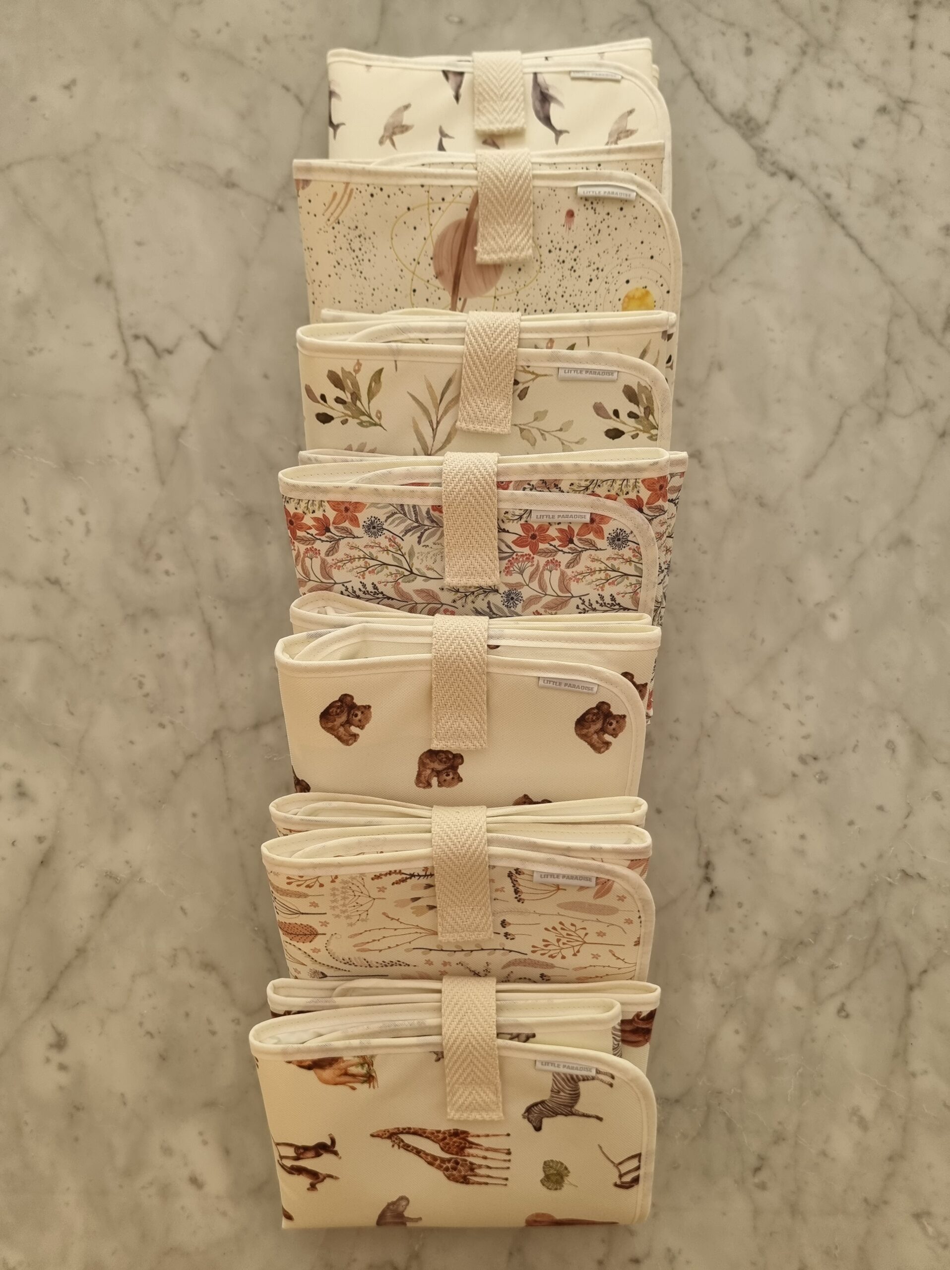 Sumá a tu compra nuestro Organizador de Cochecito, confeccionado en los mismos diseños. Una combinación práctica y estética para llevar todo lo necesario en tus salidas con el bebé.