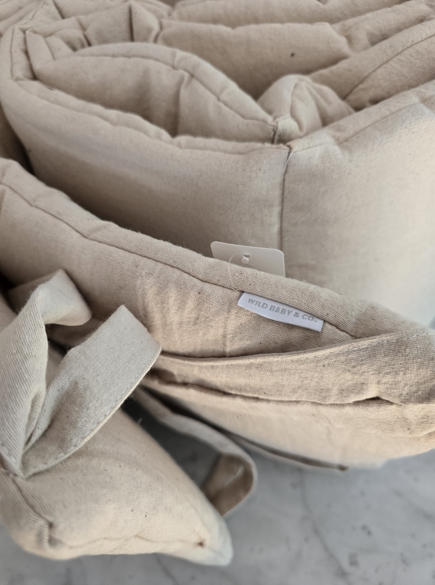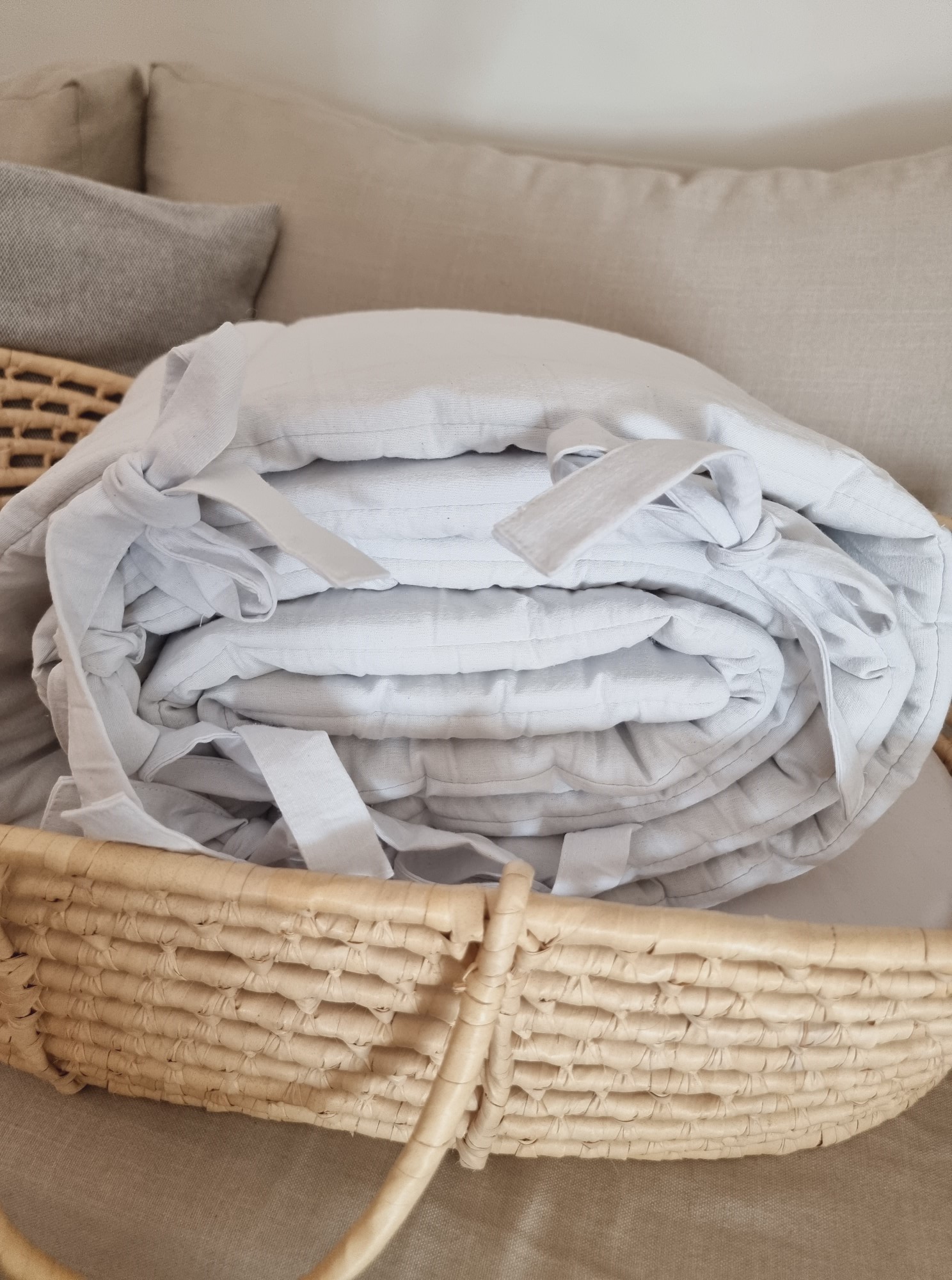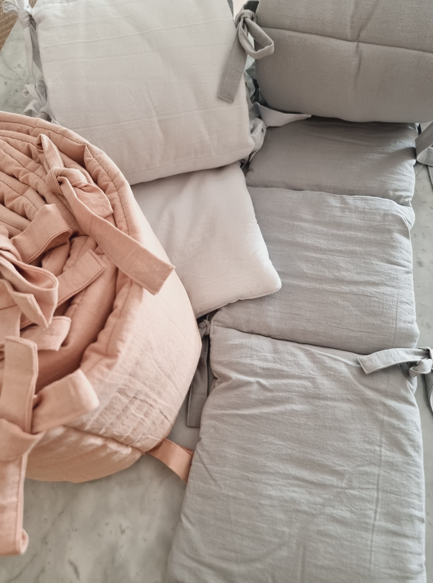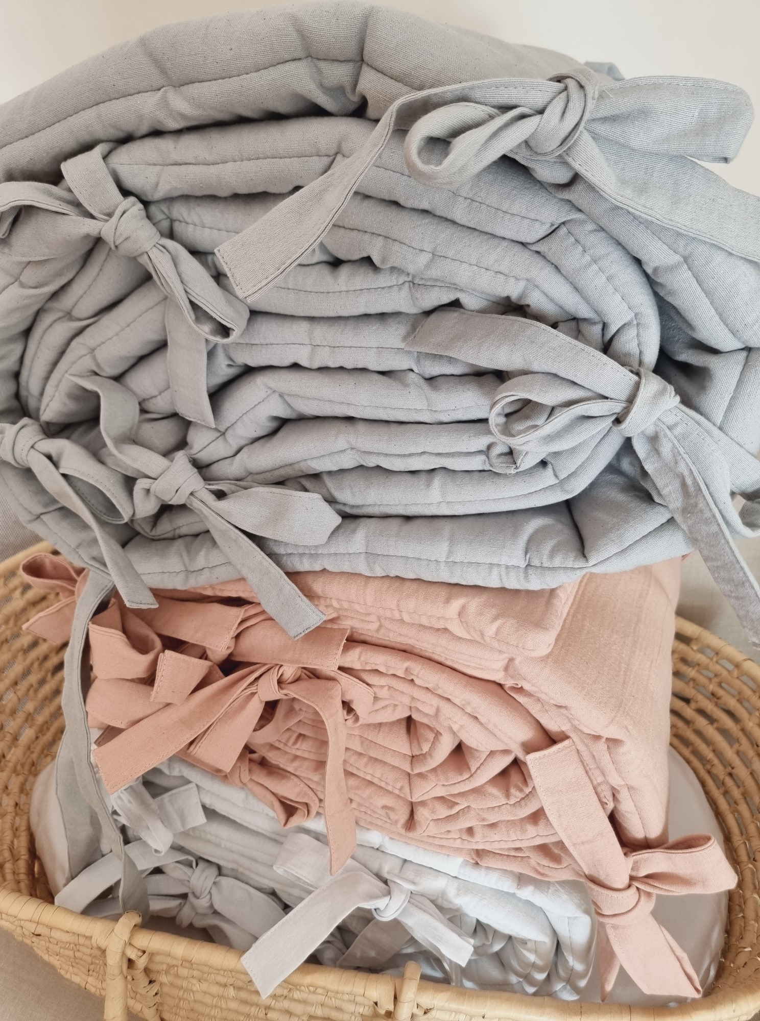 Confeccionada en tusor 100% algodón y rellena con doble guata siliconada, esta chichonera brinda confort y seguridad para los momentos de descanso del bebé 💤✨