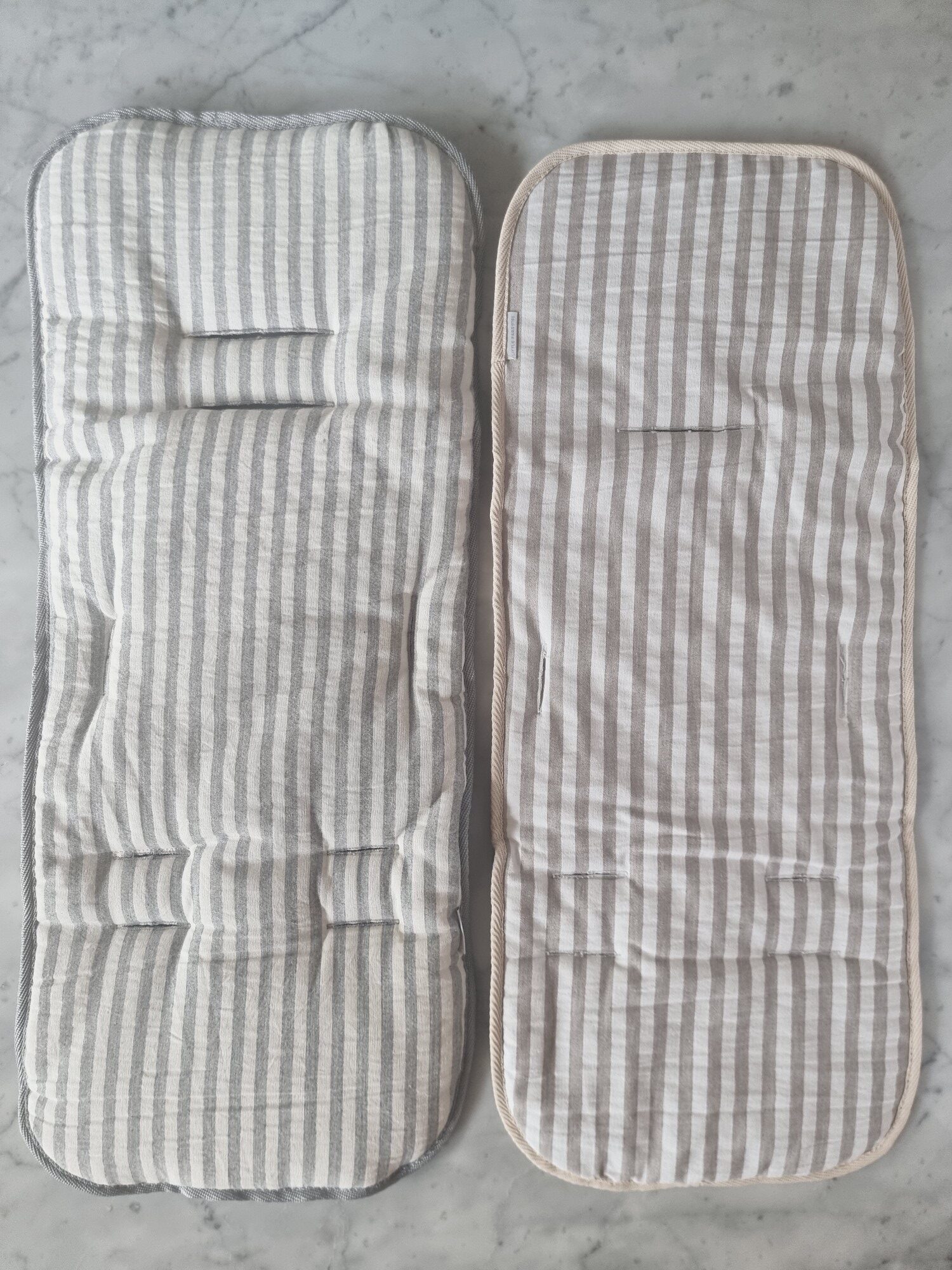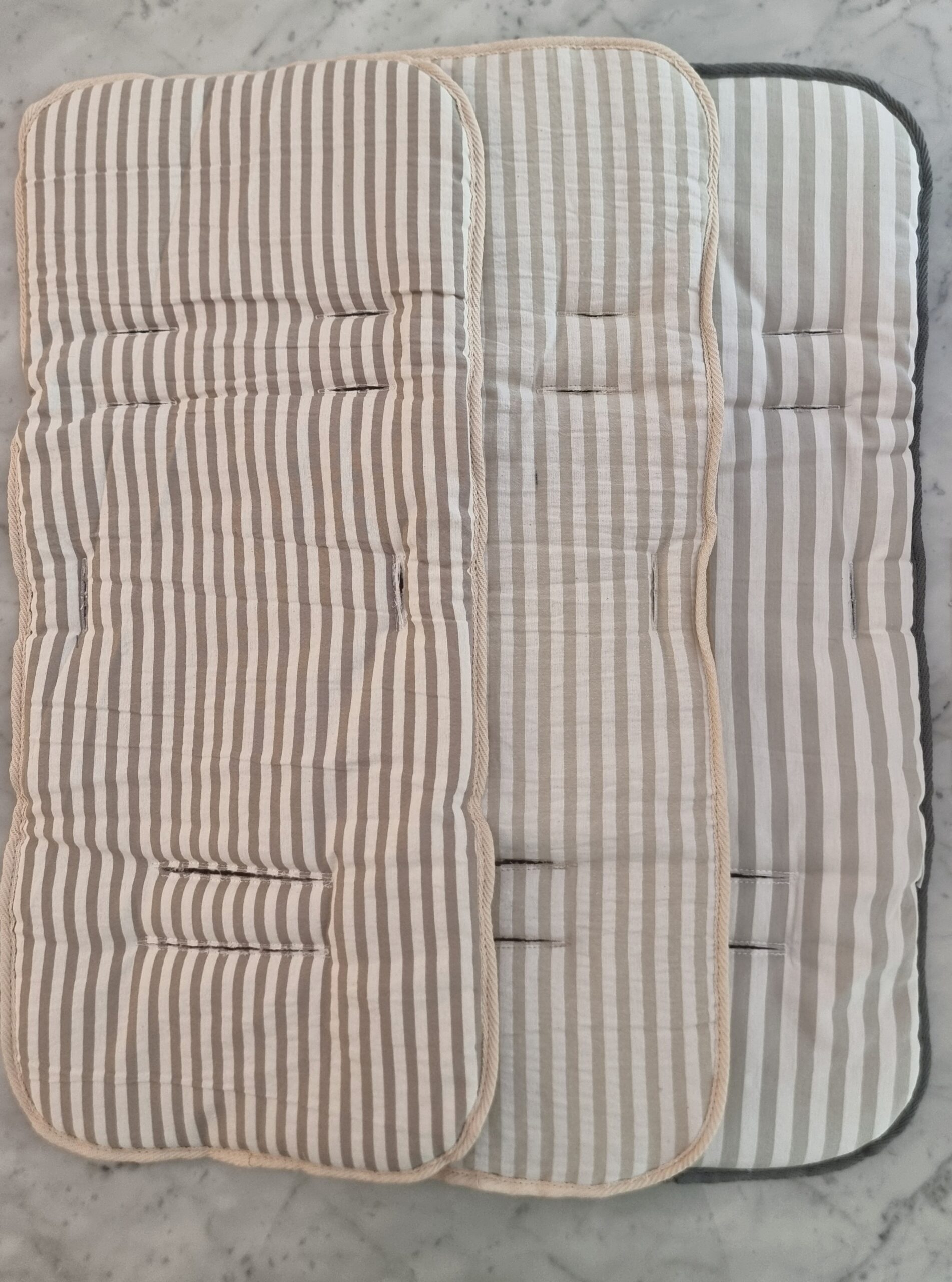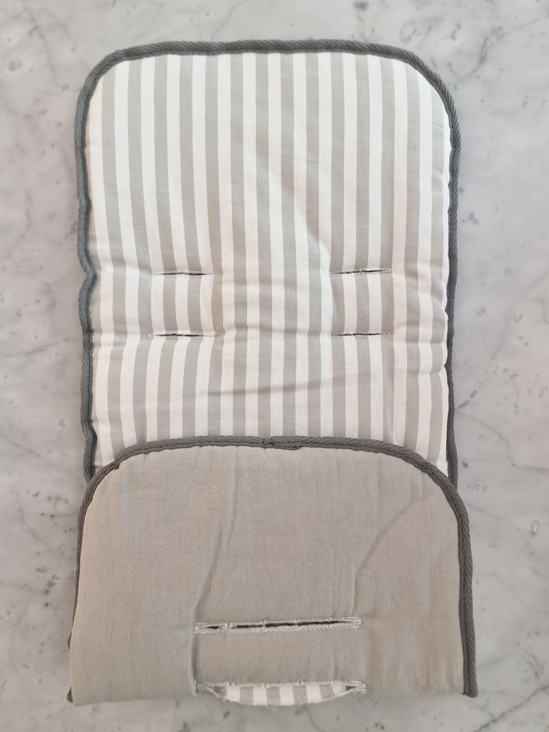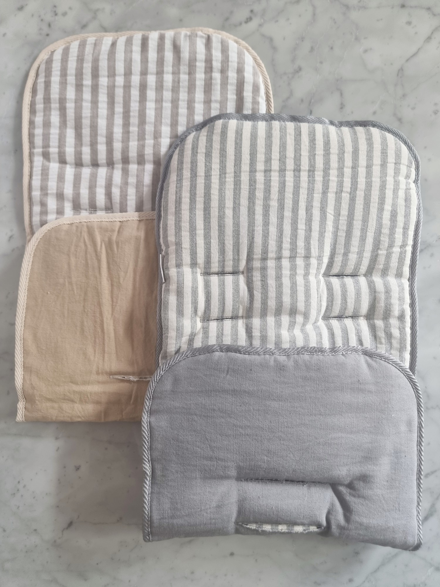 Disponible en colores unisex: rayado beige, rayado gris, rayado visón, rayado arena y rayado gris claro.