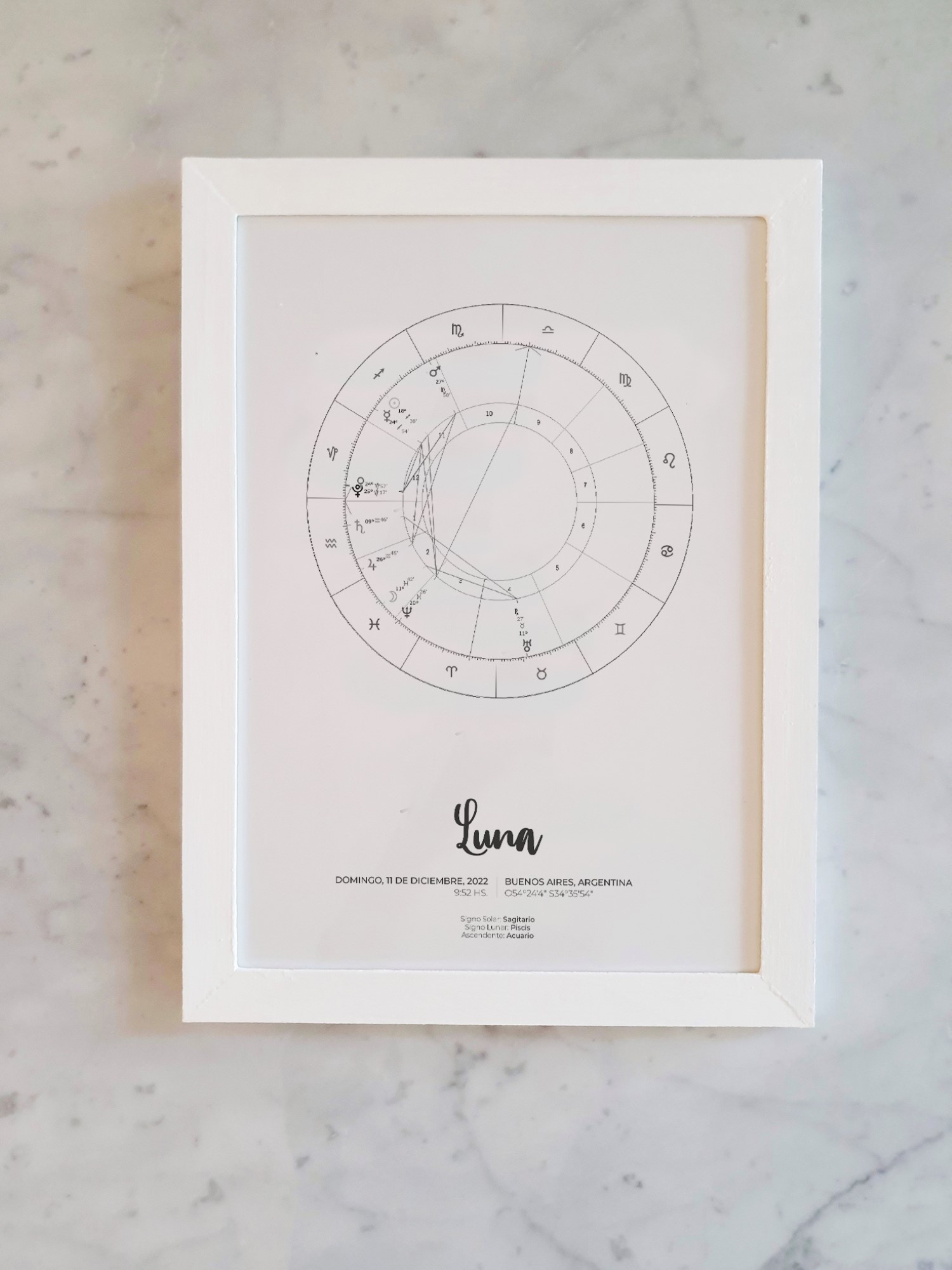📝 Importante: Este producto incluye el cuadro impreso, no incluye el informe escrito de la carta astral.