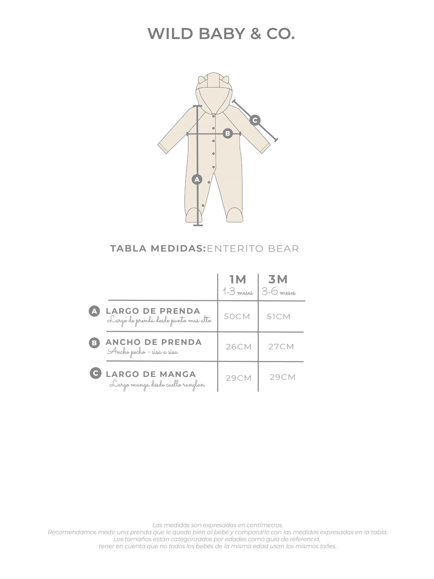 Disponible en talles 1 mes (1m a 3 meses) y 3 meses (3 a 6 meses) y 3 colores hermosos y unisex: Natural, Arena y Gris Claro.
