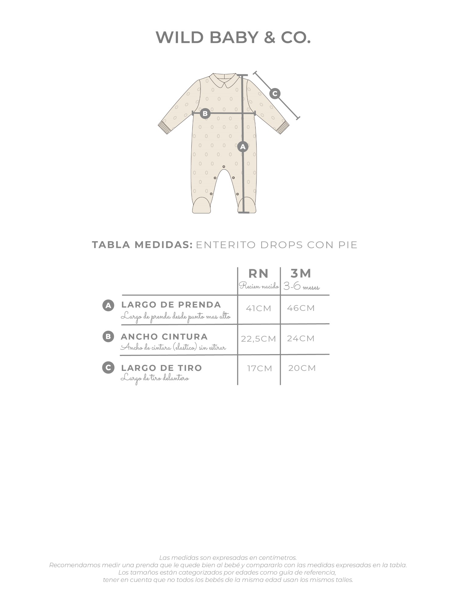 Disponible en talles RN (0 a 3m) y 3m (3 a 6 meses).
