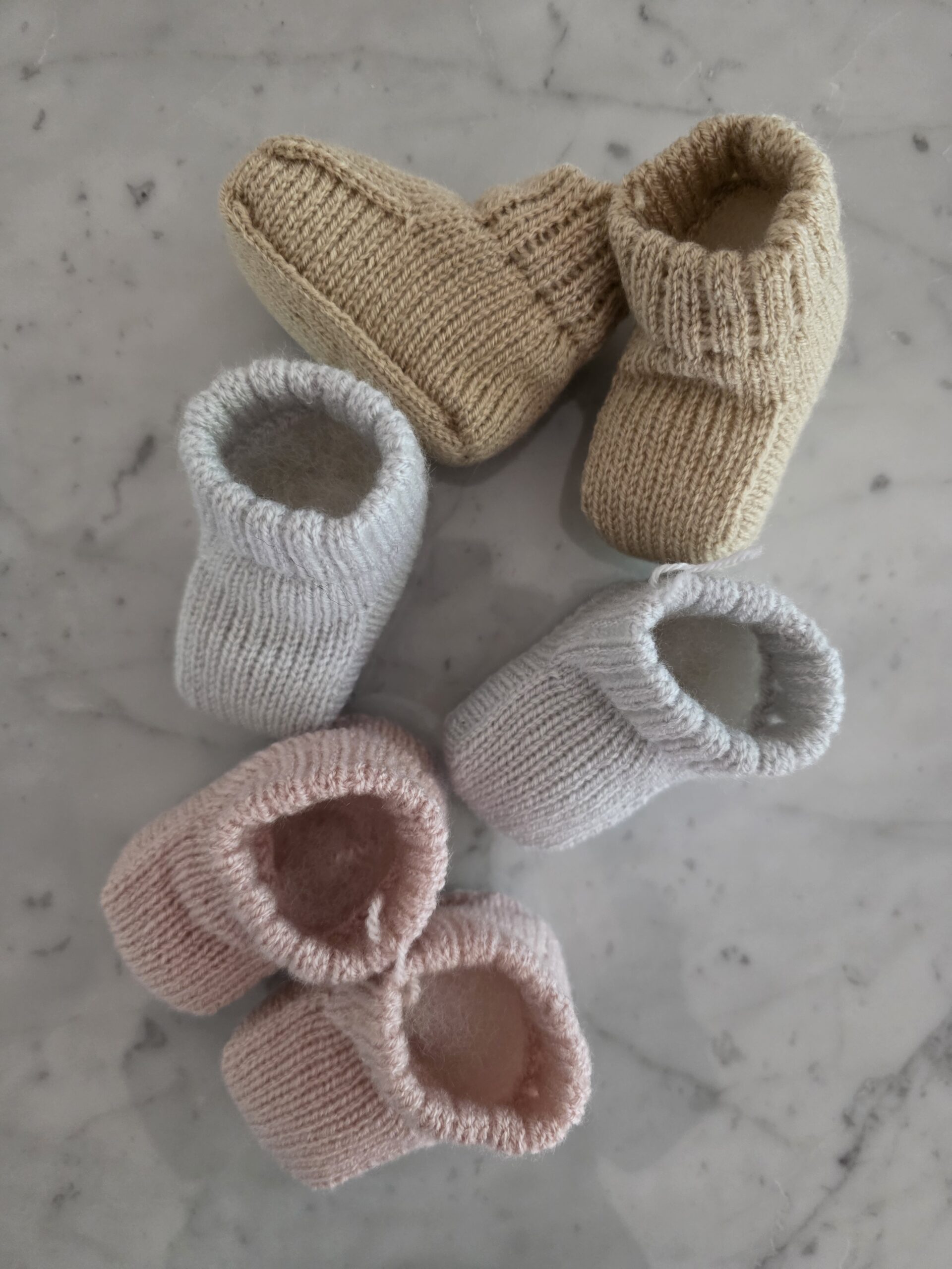 Escarpines tejidos en hilo dralon 100% hipoalergénico, una fibra suave, abrigada y que no pica, ideal para tu bebé. Confección y terminaciones de calidad. Súper suaves al tacto.