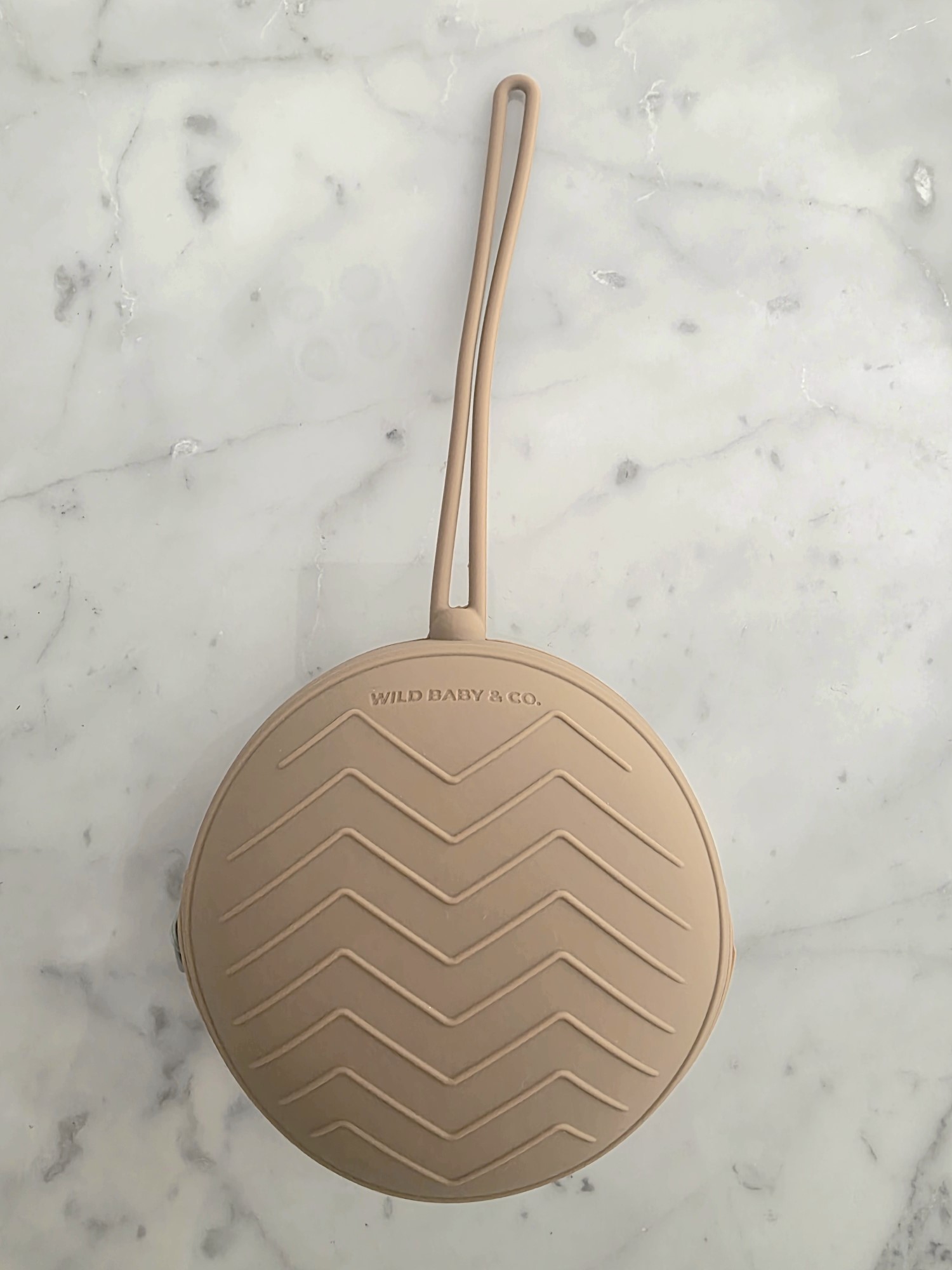 Su diseño compacto, con tira flexible, permite colgarlo fácilmente de la cartera, bolso o cochecito, manteniendo el chupete siempre al alcance y evitando pérdidas cuando no está en uso.