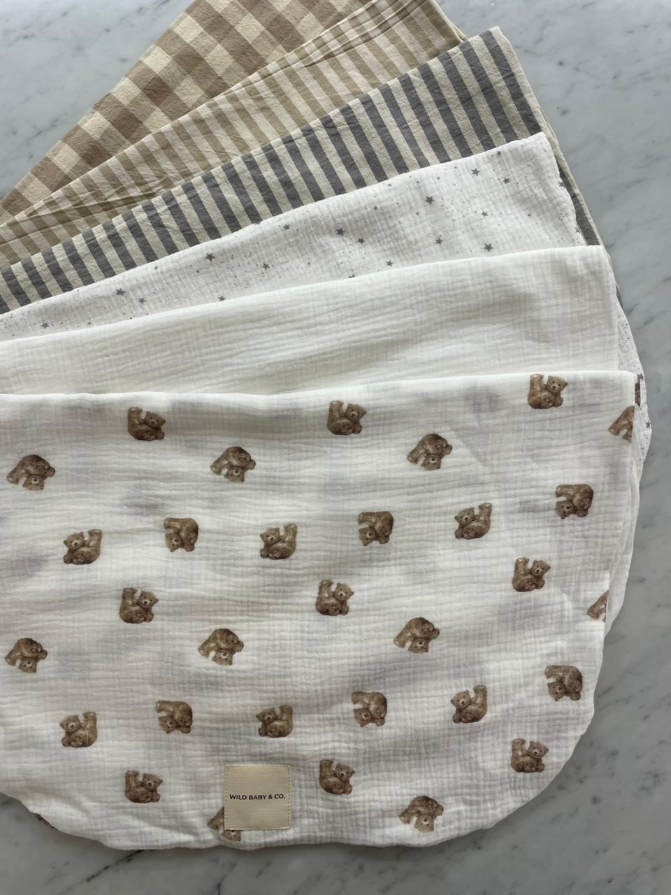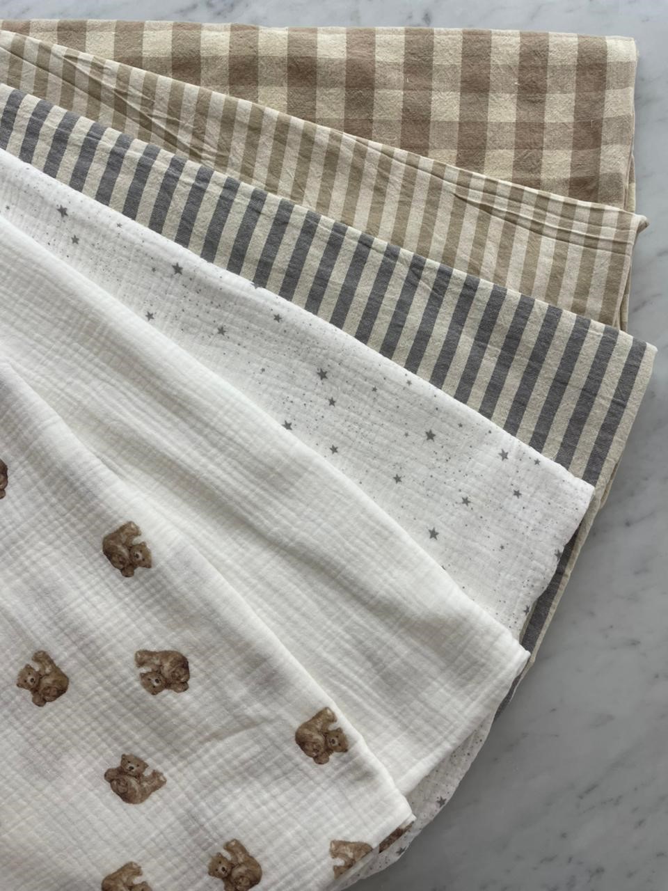 Confeccionada en gasa de algodón 100%, su textura liviana y respirable acompaña la piel delicada desde los primeros días. Su diseño simple y cuidado permite renovar el almohadón posicionador con facilidad, manteniendo siempre una superficie limpia y confortable.