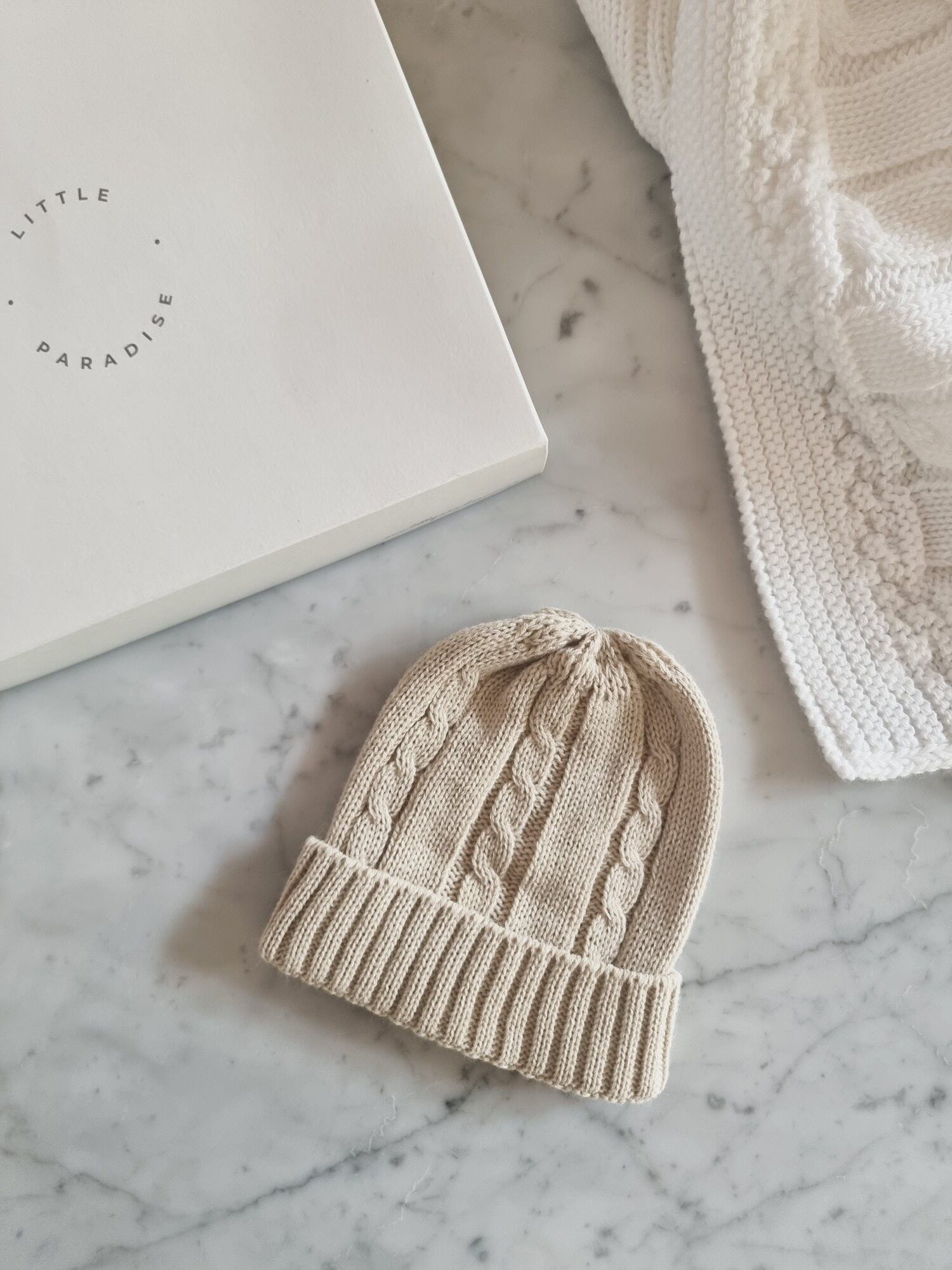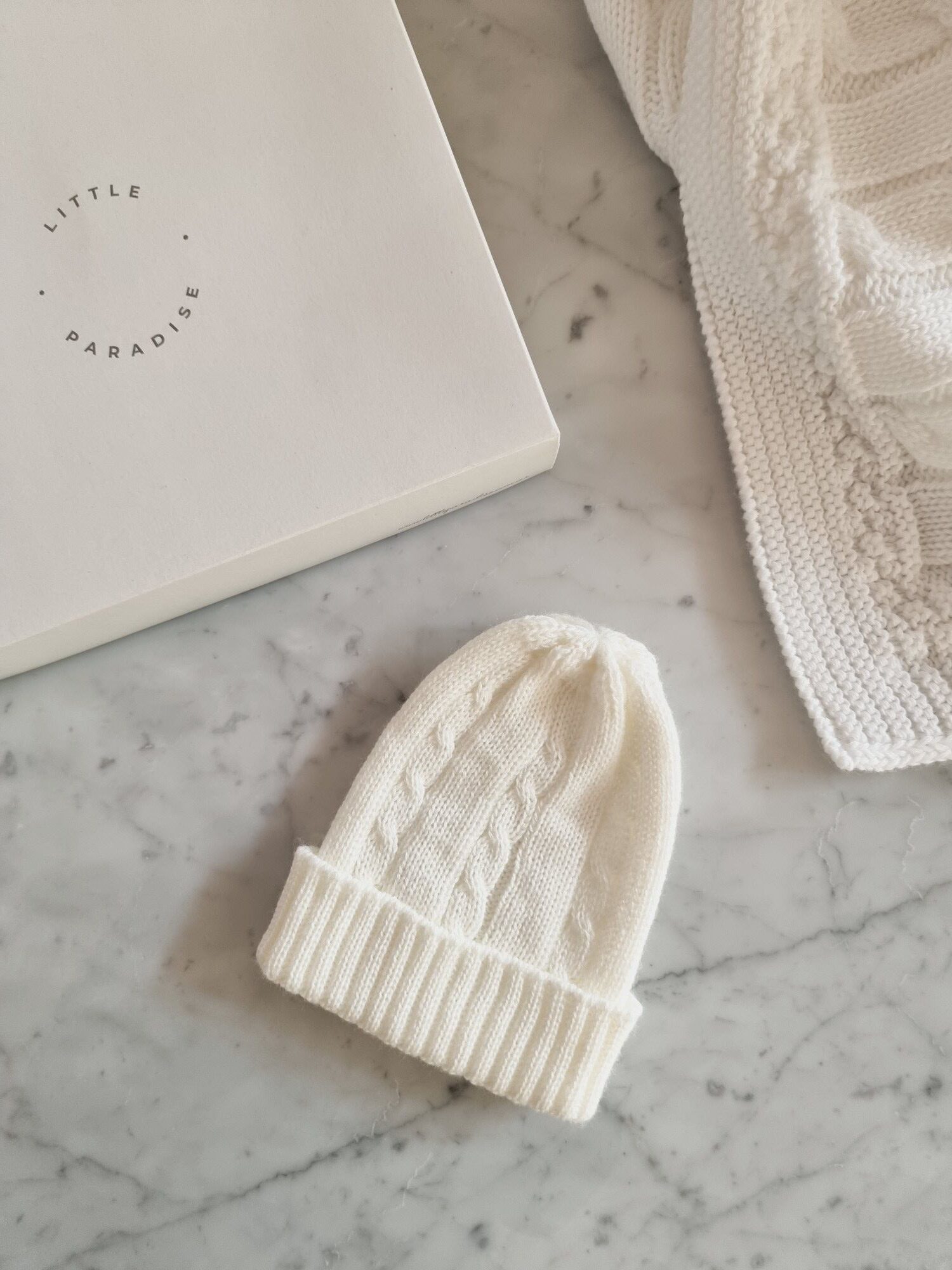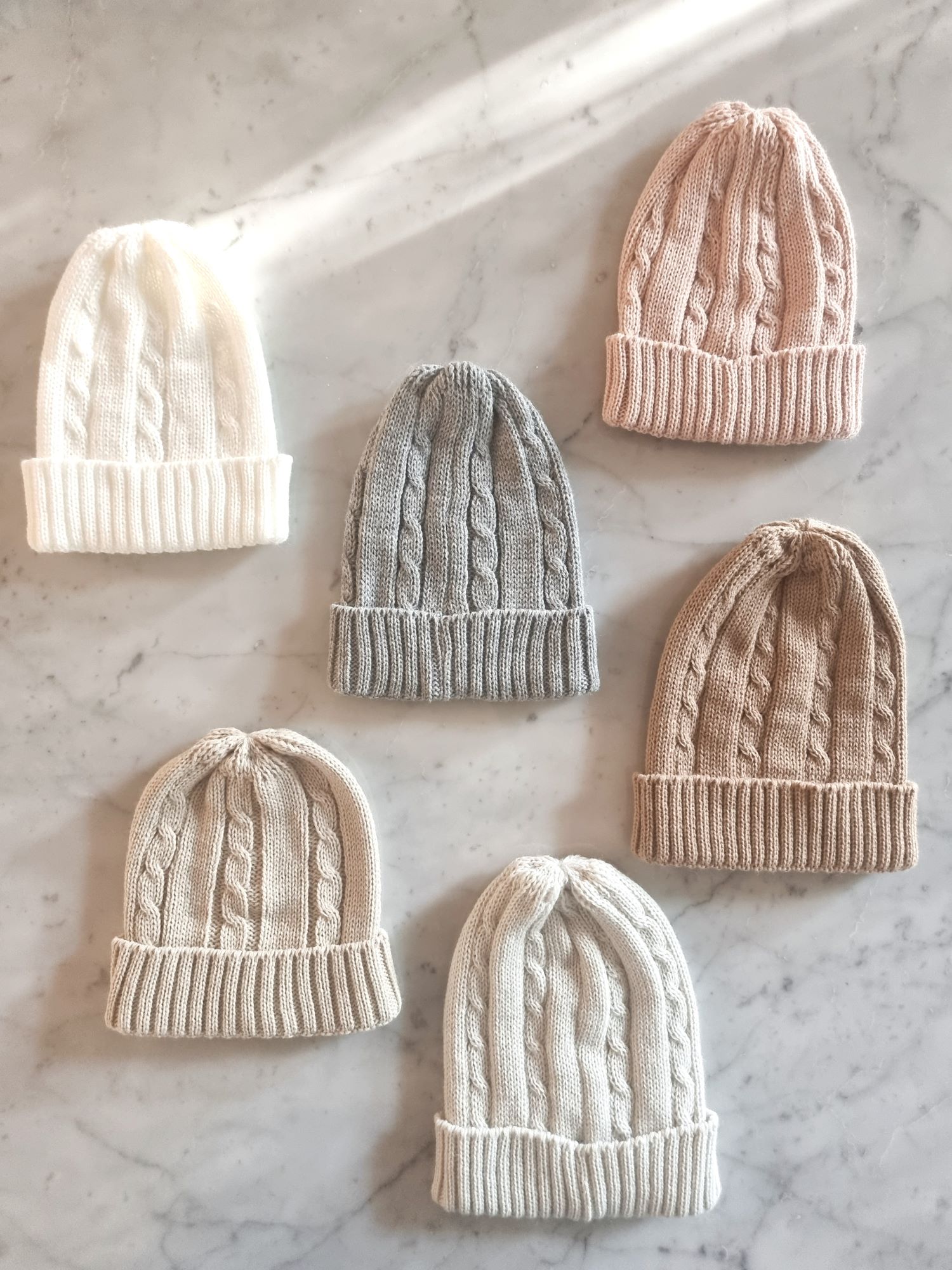 Gorrito tejido en punto de ochitos. Confección y terminaciones de calidad, muy suave al tacto!