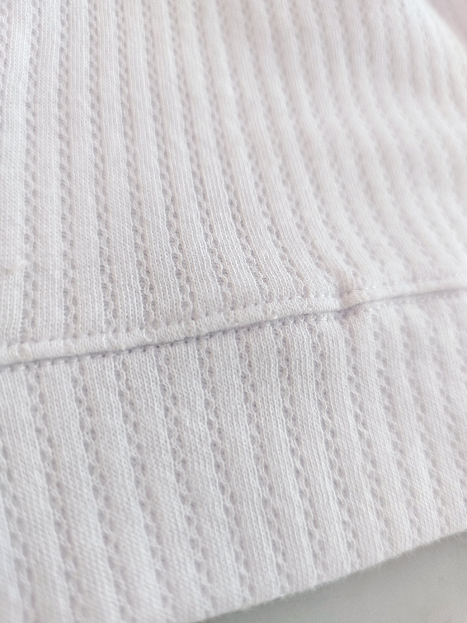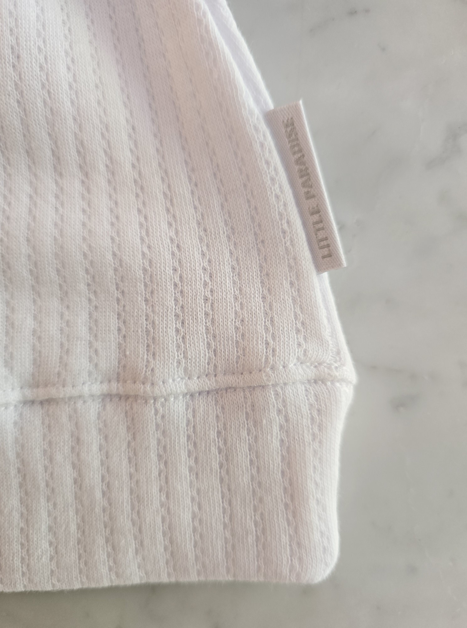 Gorrito 100% algodón labrado. Super suave y delicado, ideal para recibir al bebé en la clínica y conservar la temperatura de su cabecita.