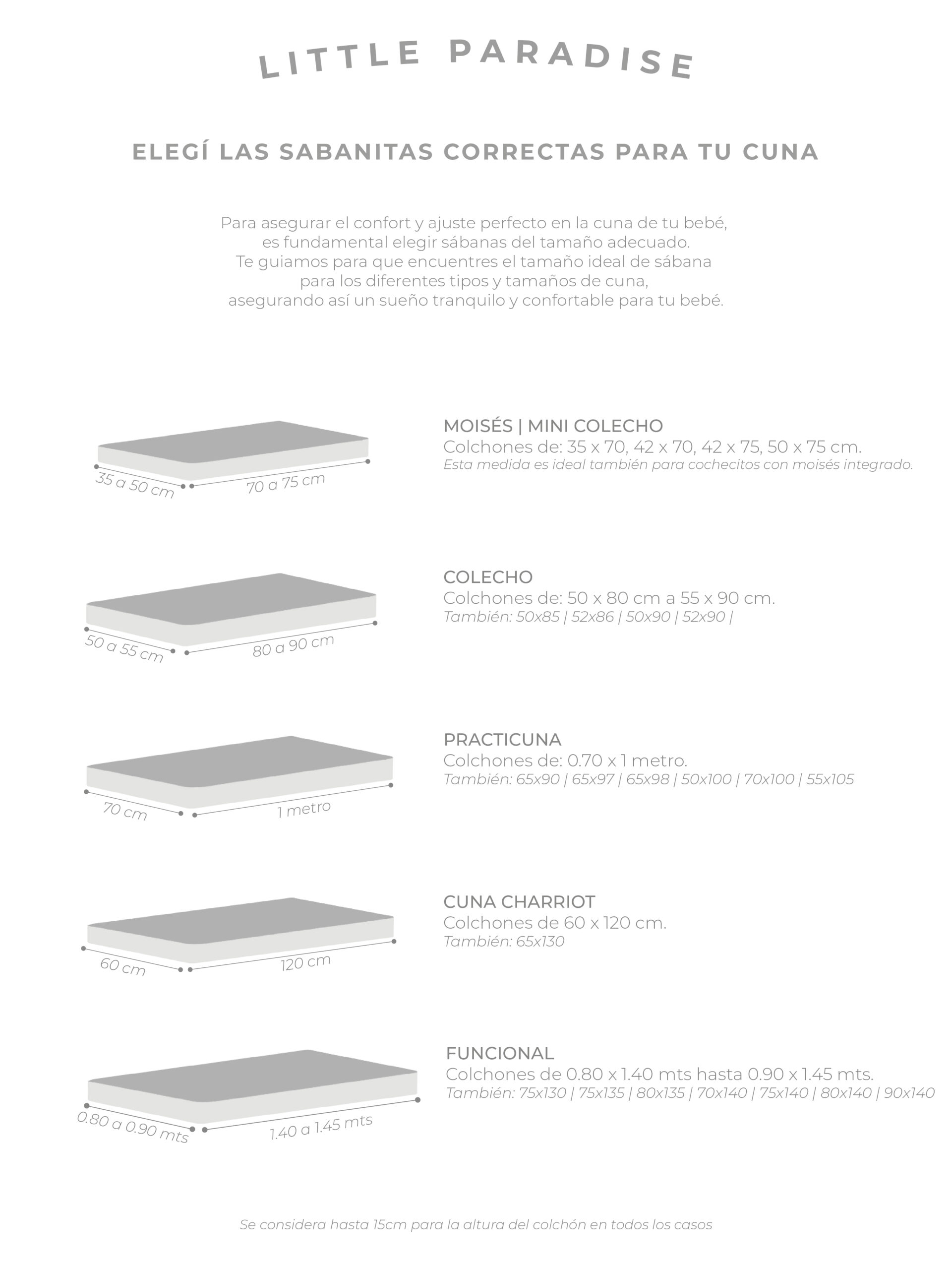 ATENCIÓN! Medí tu colchón para saber si son las sábanas correctas para su cunita. Al pie tenés las medidas.