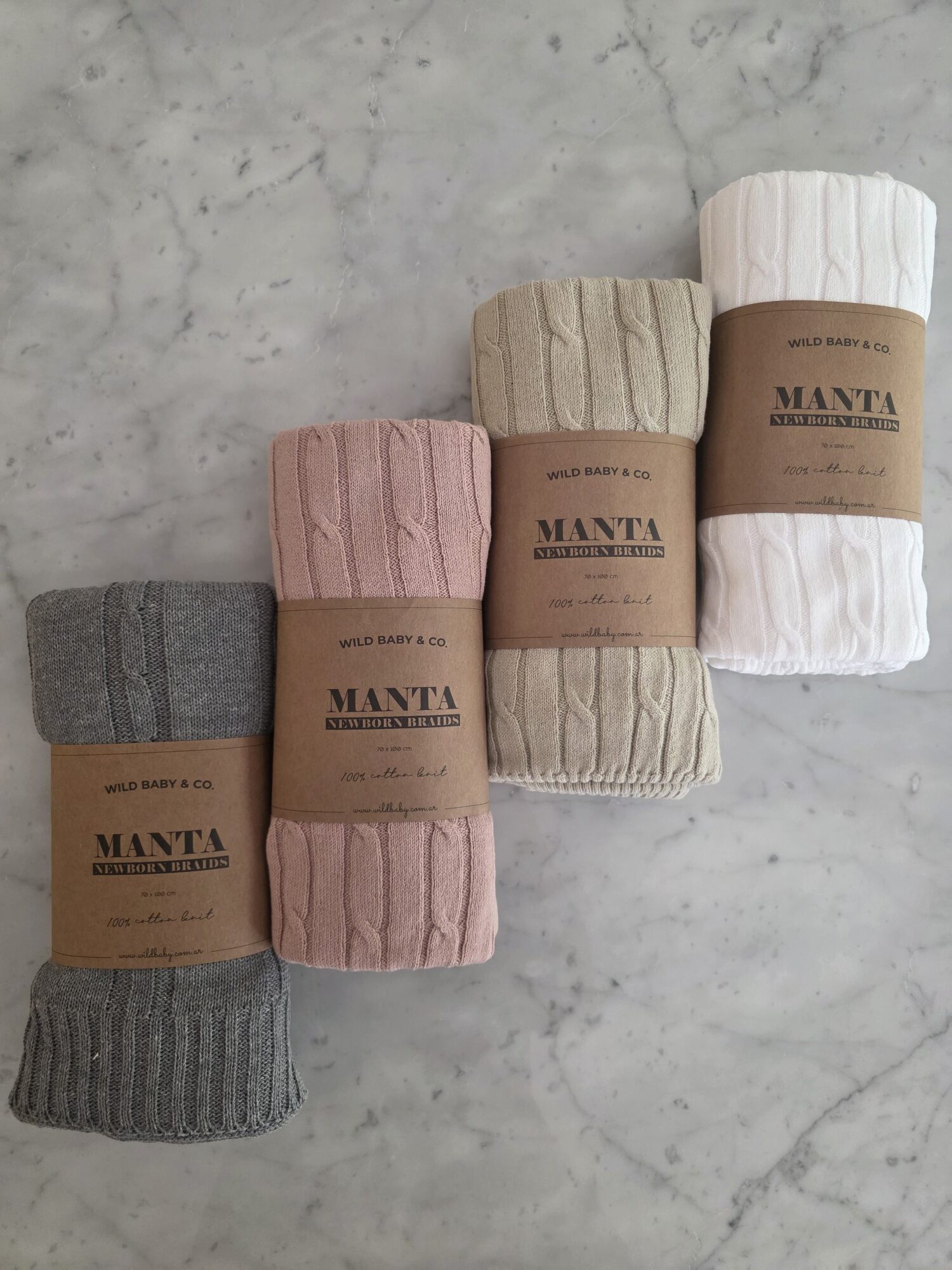 Hermoso y clásico diseño de trenzas, disponible en 4 colores clásicos: Natural, Blush, Beige y Gris Melange.