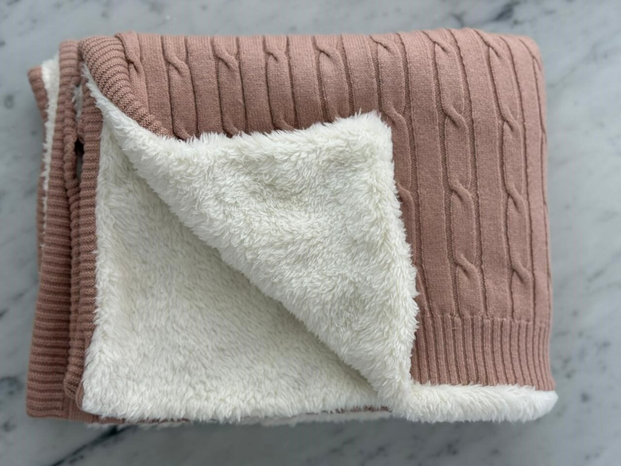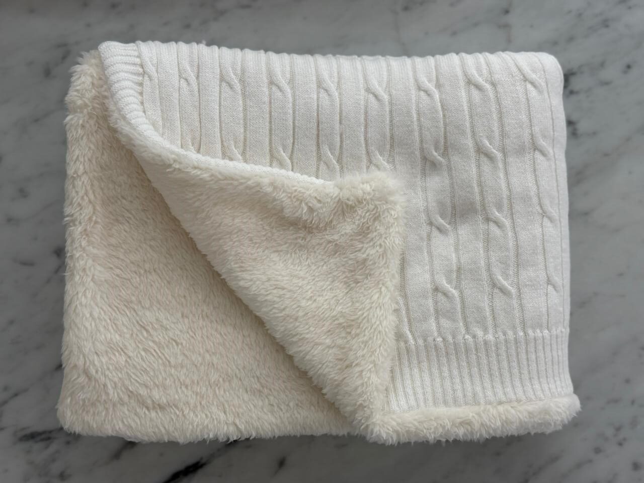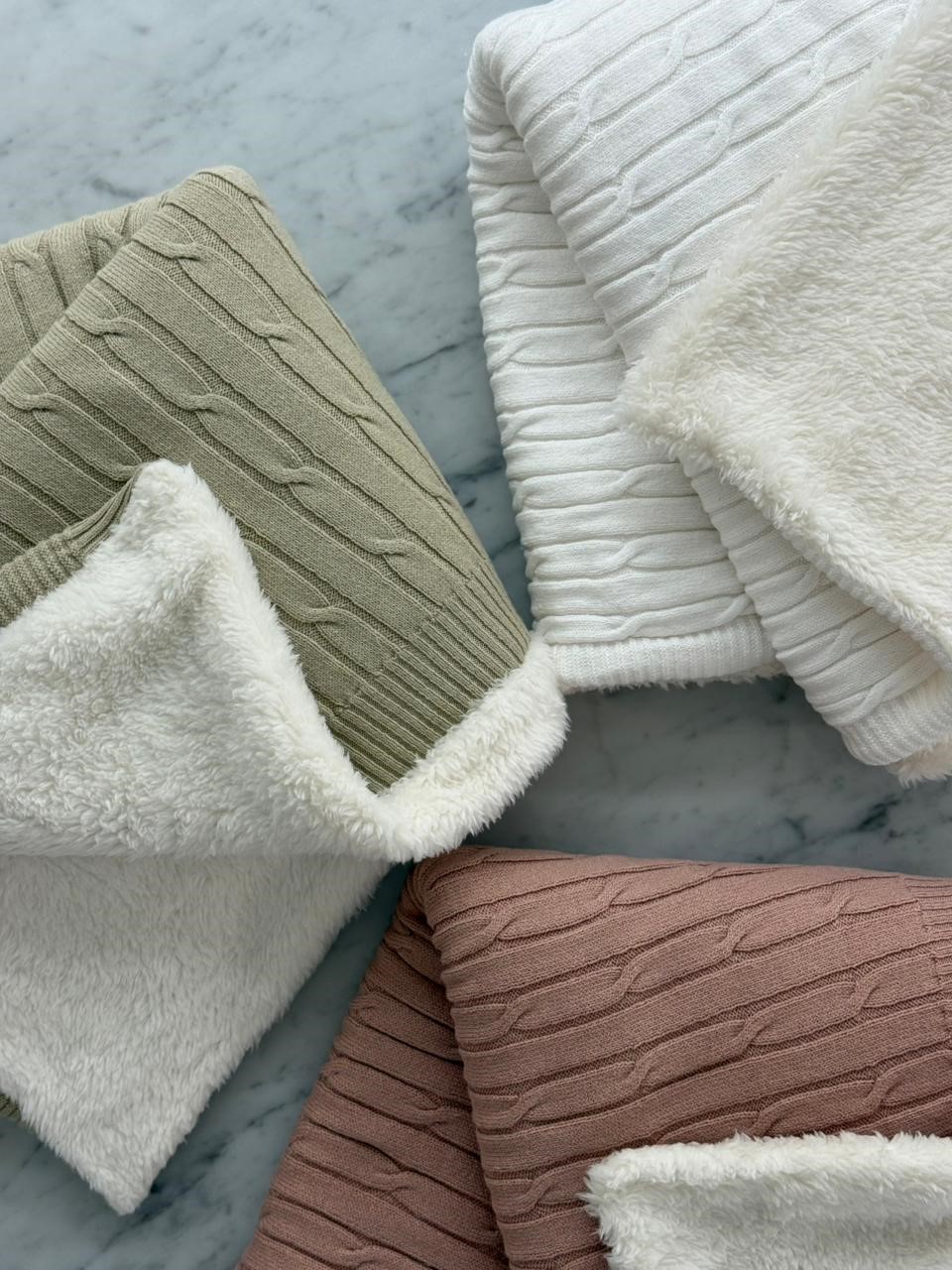 Manta doble tejida en hilo 100% algodón y reverso de corderito super suave y abrigado.