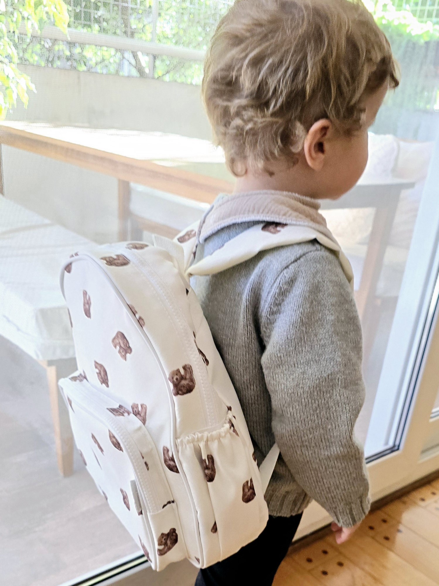 Mochila infantil confeccionada en material impermeable, tanto en su interior como en su exterior, pensada para acompañar los primeros años de escolaridad o actividades al aire libre.