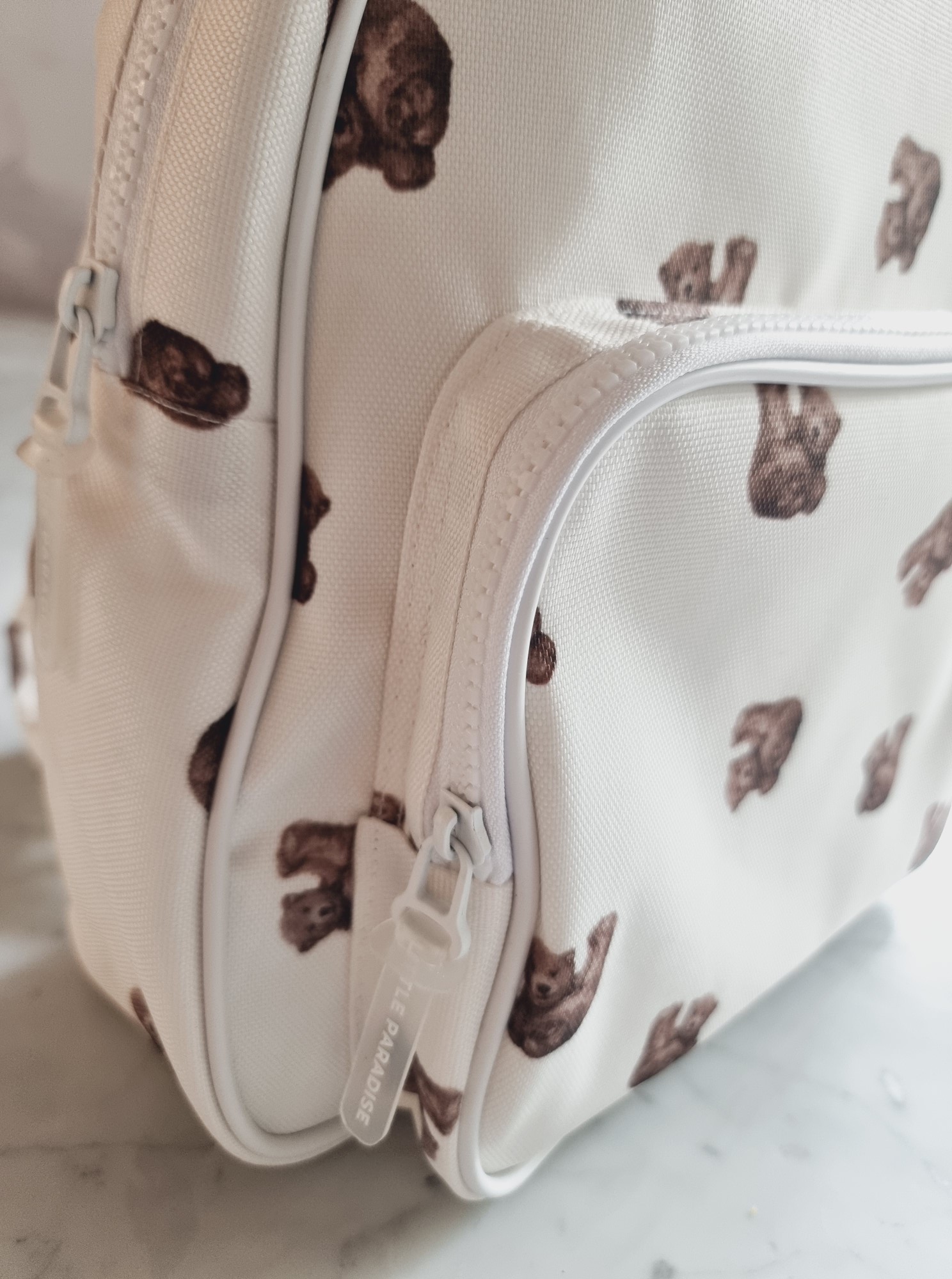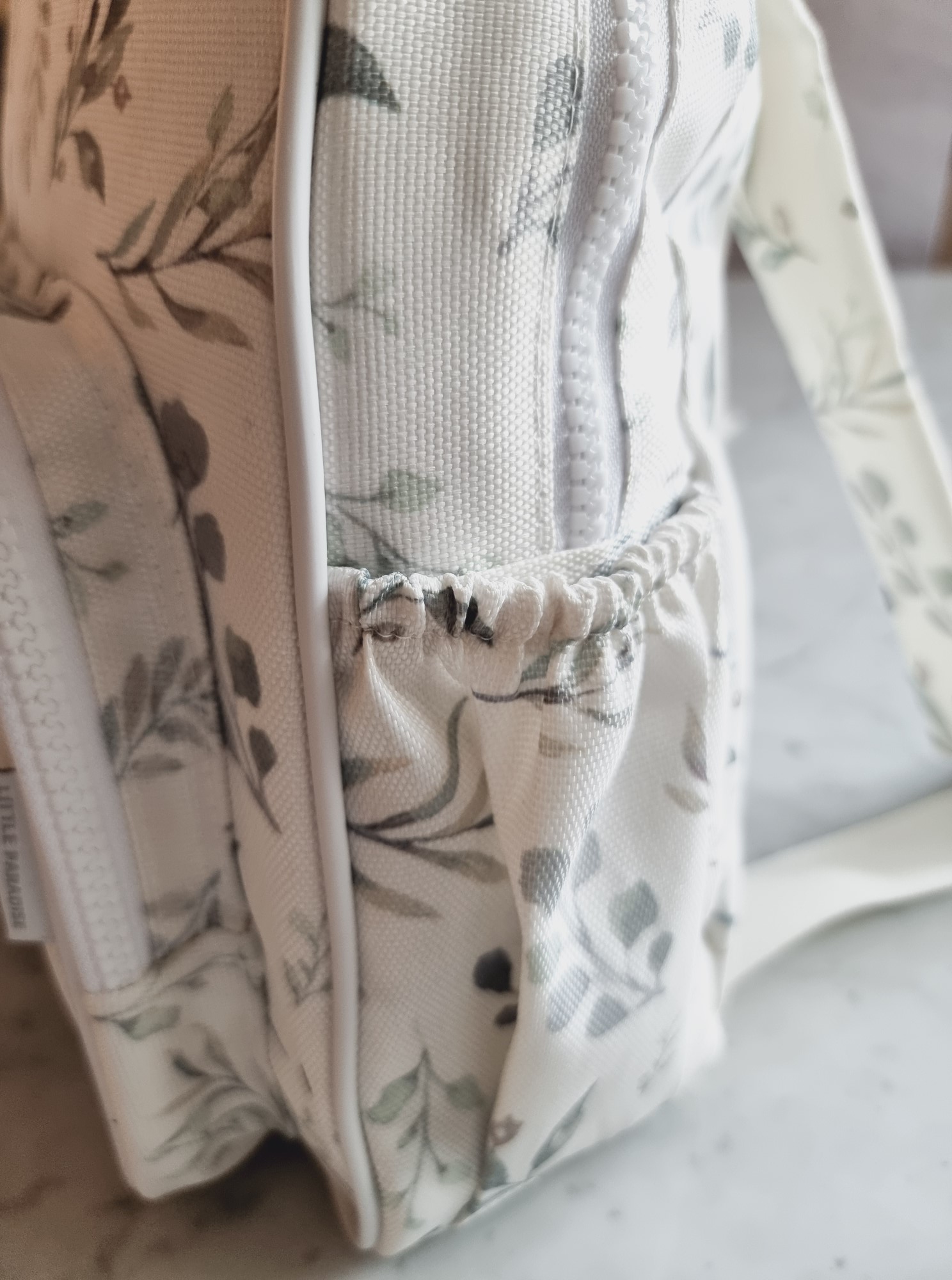 Cuenta con cierres de calidad en todos sus compartimentos, bolsillo frontal amplio con cierre y un lateral con elástico ideal para mamaderas o botellas.