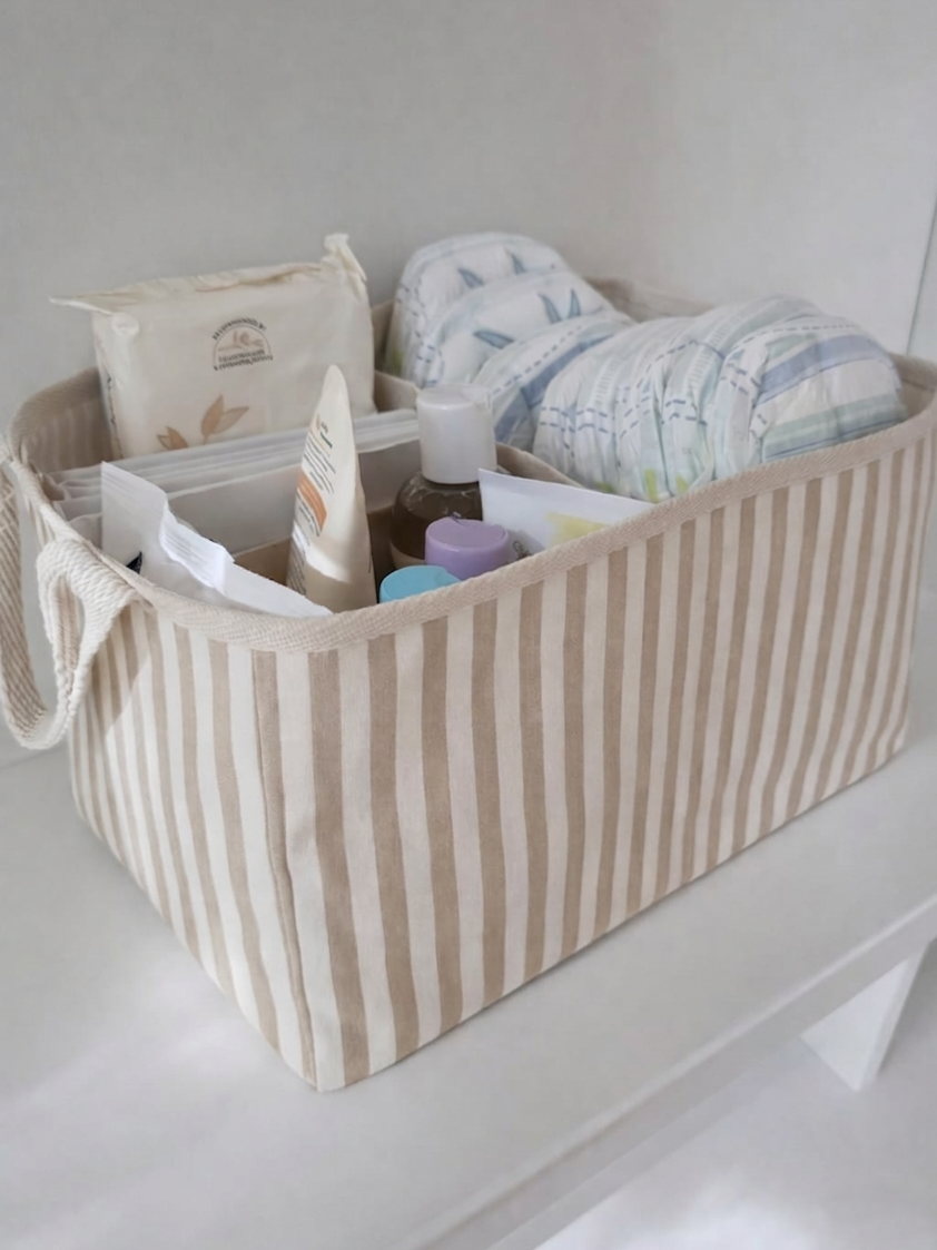 Formato amplio y súper funcional que permite mantener todo al alcance de la mano. Cuenta con tres divisiones internas que ayudan a ordenar pañales, toallitas húmedas, óleo, algodón, alcohol en gel y otros indispensables del día a día.