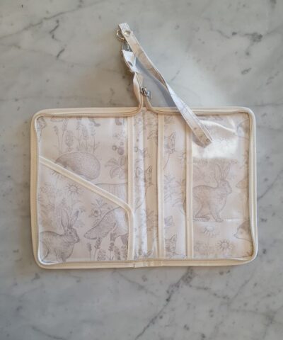 En su interior: 3 bolsillos para carnets, una solapa para colocar cuadernito y lapicera y dos bolsillos grandes para libreta de vacunas, agenda pediátrica o lo que quieras. Tiene mucho espacio de guardado!