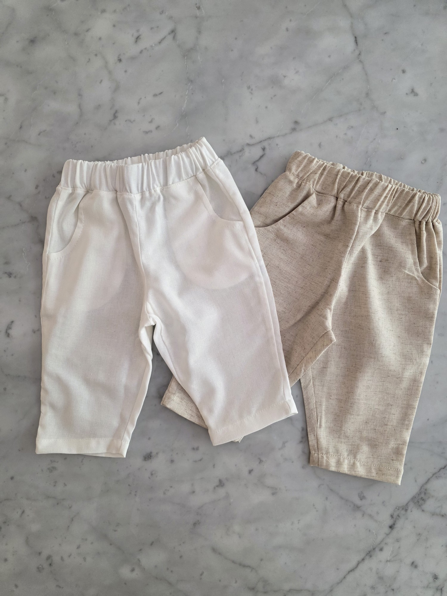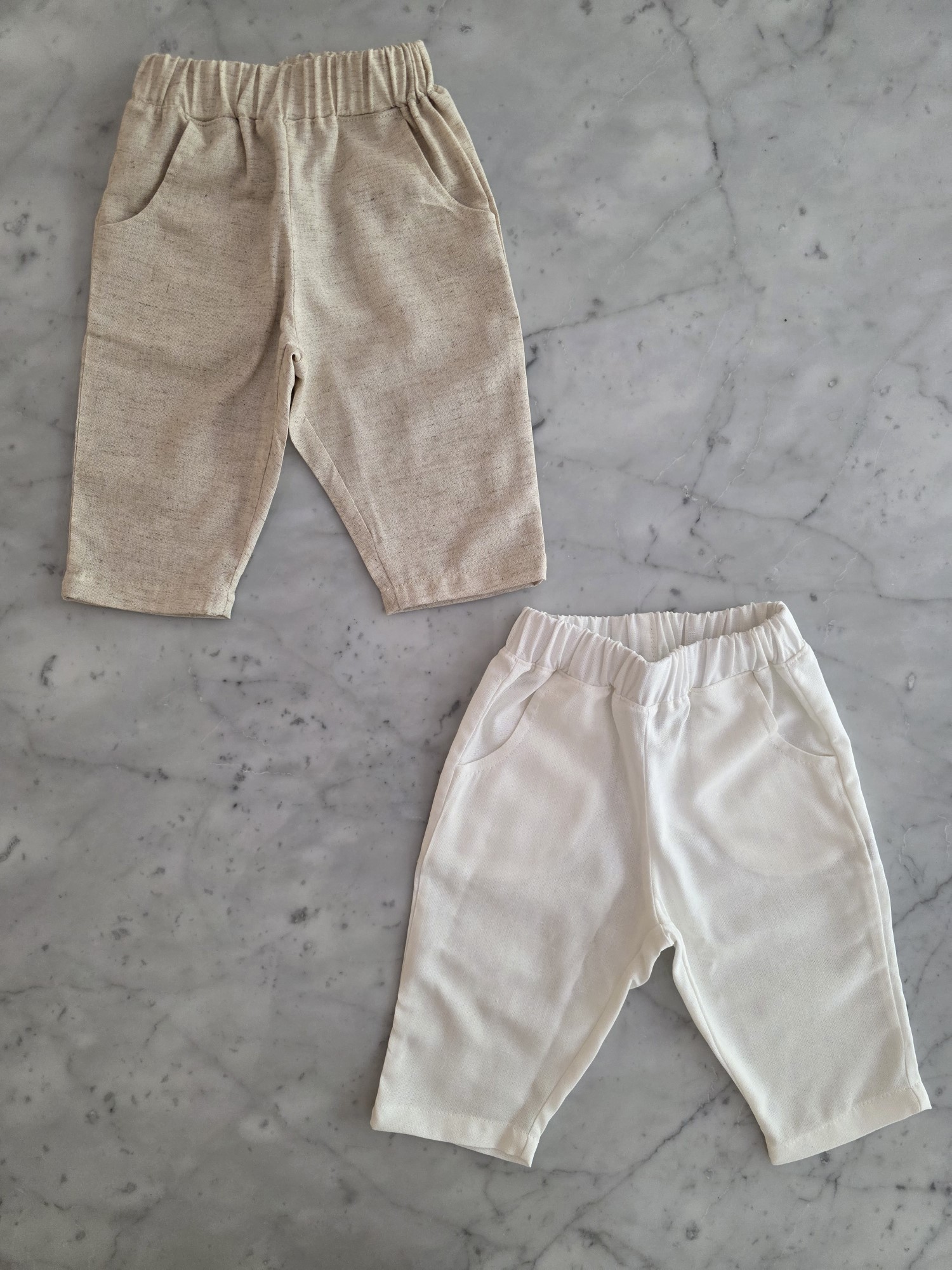 La textura de estos pants de lino aporta una sensación fresca y natural, ideal para los días cálidos. Confeccionados en un tejido liviano, presentan cintura elastizada que asegura un calce cómodo y un bolsillo lateral que suma funcionalidad y detalle de diseño.