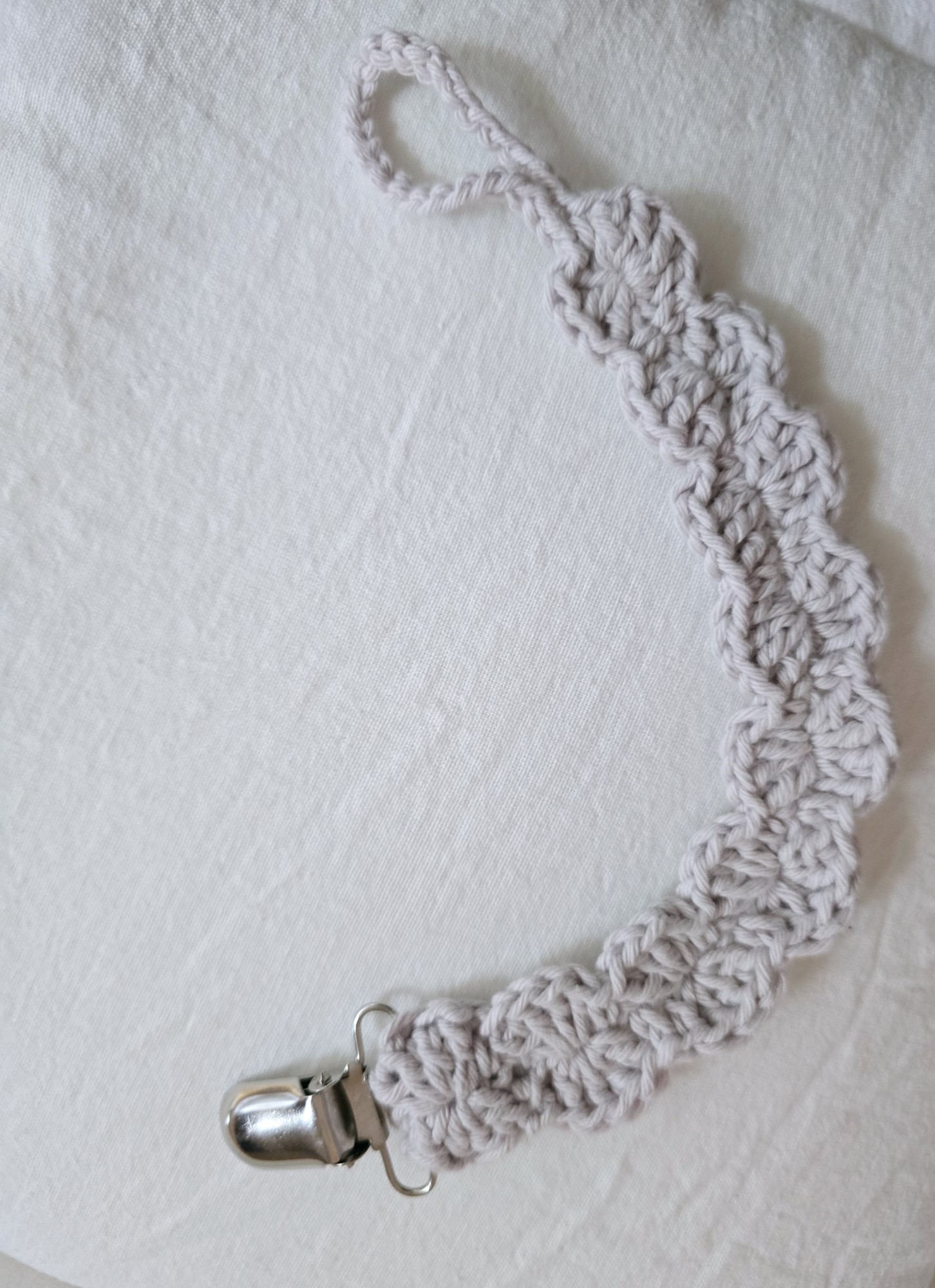 Portachupetes tejido, confeccionado en hilo 100% algodón.