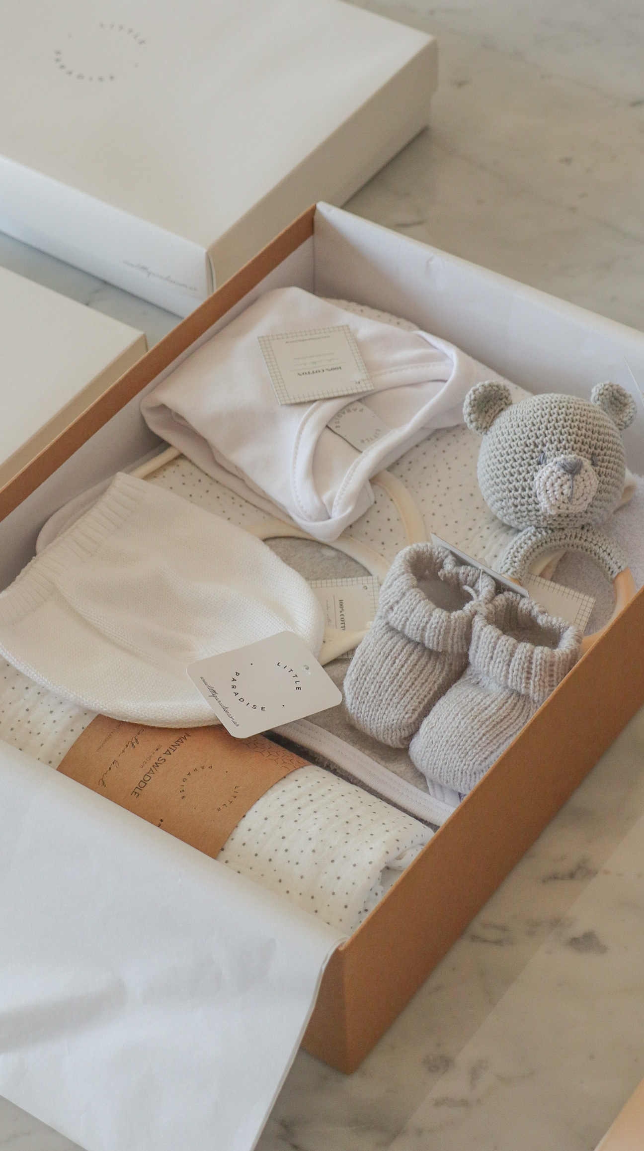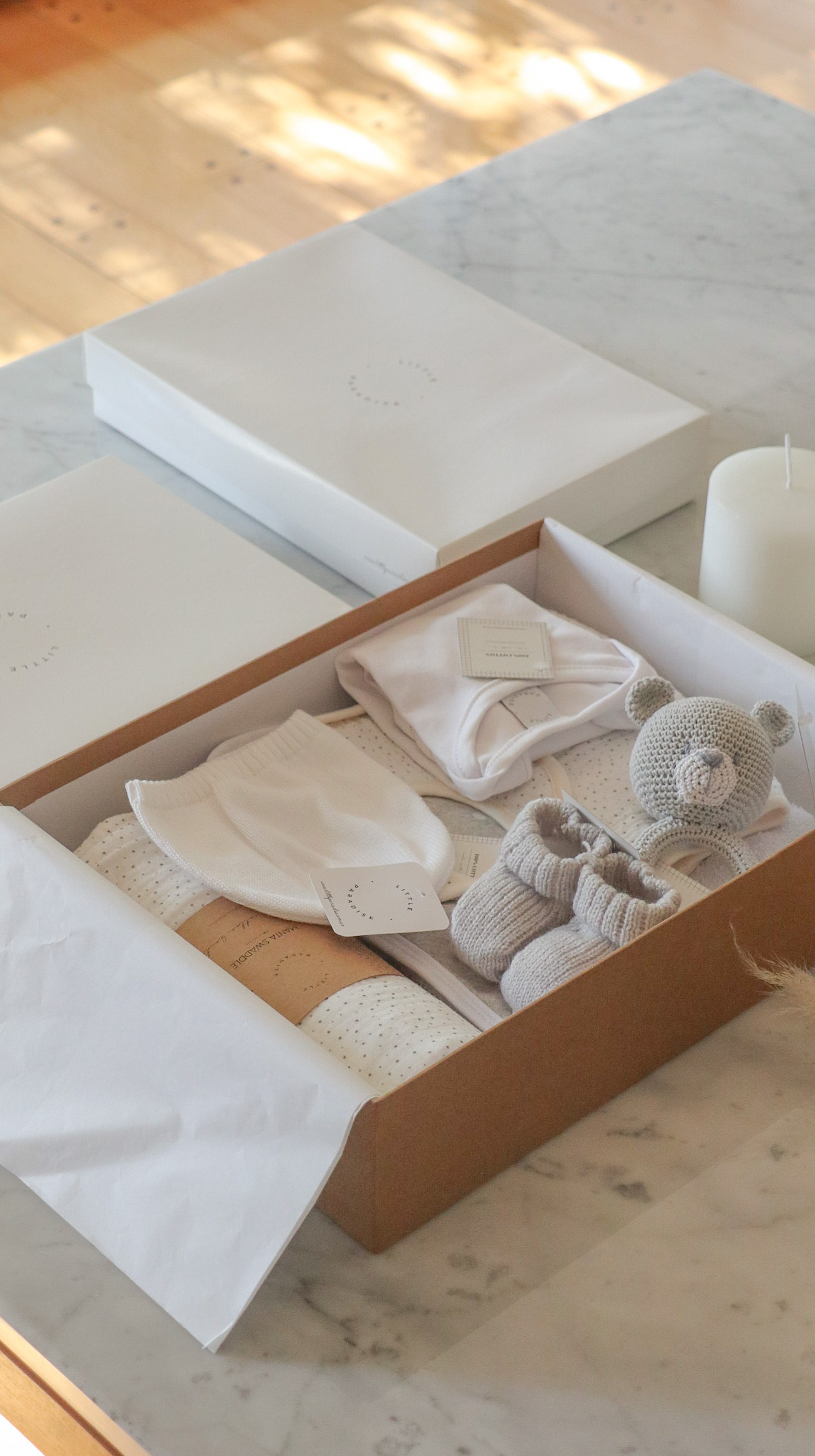 Un set de 9 piezas en hermosa caja premium, el regalo de nacimiento más lindo!