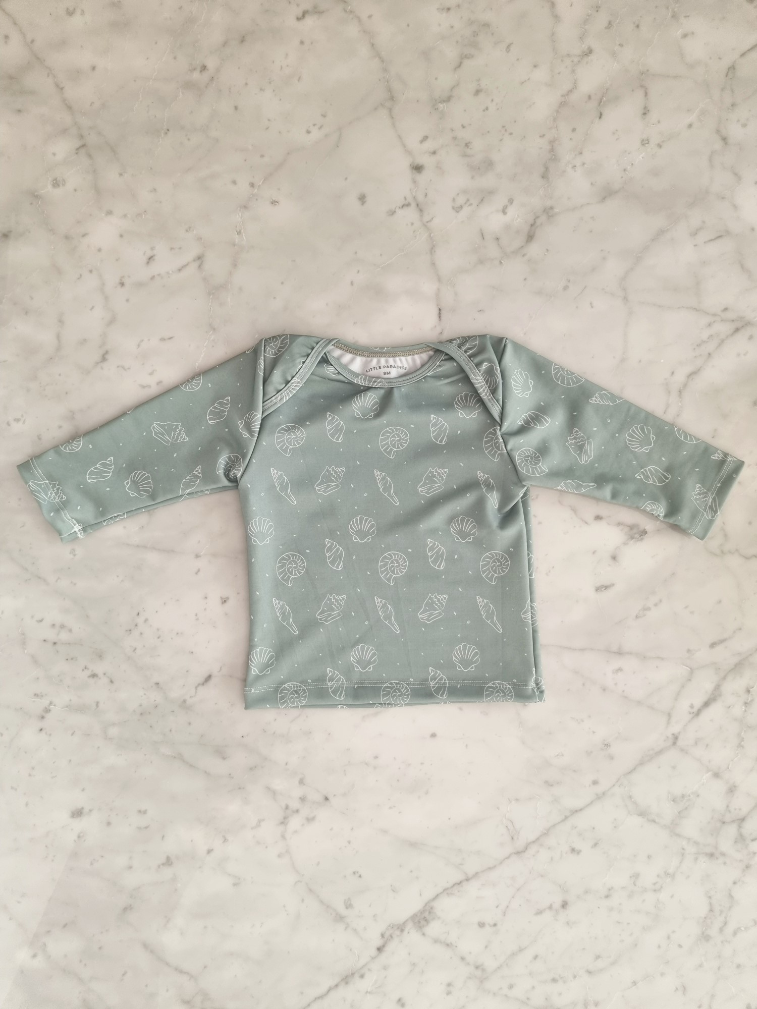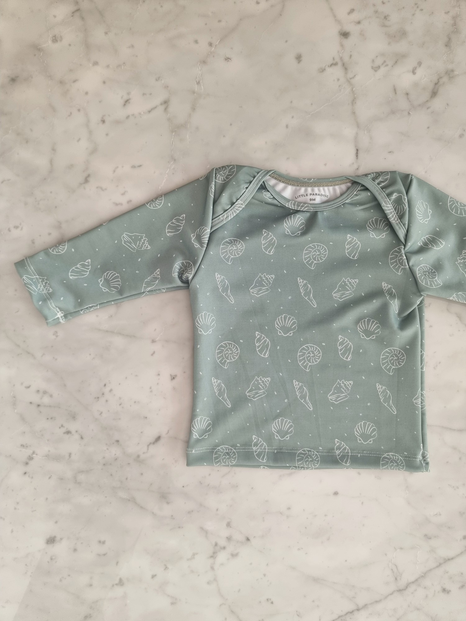 Remera manga larga con cuello americano, súper cómodas y prácticas para usar en la pile o en la playa.