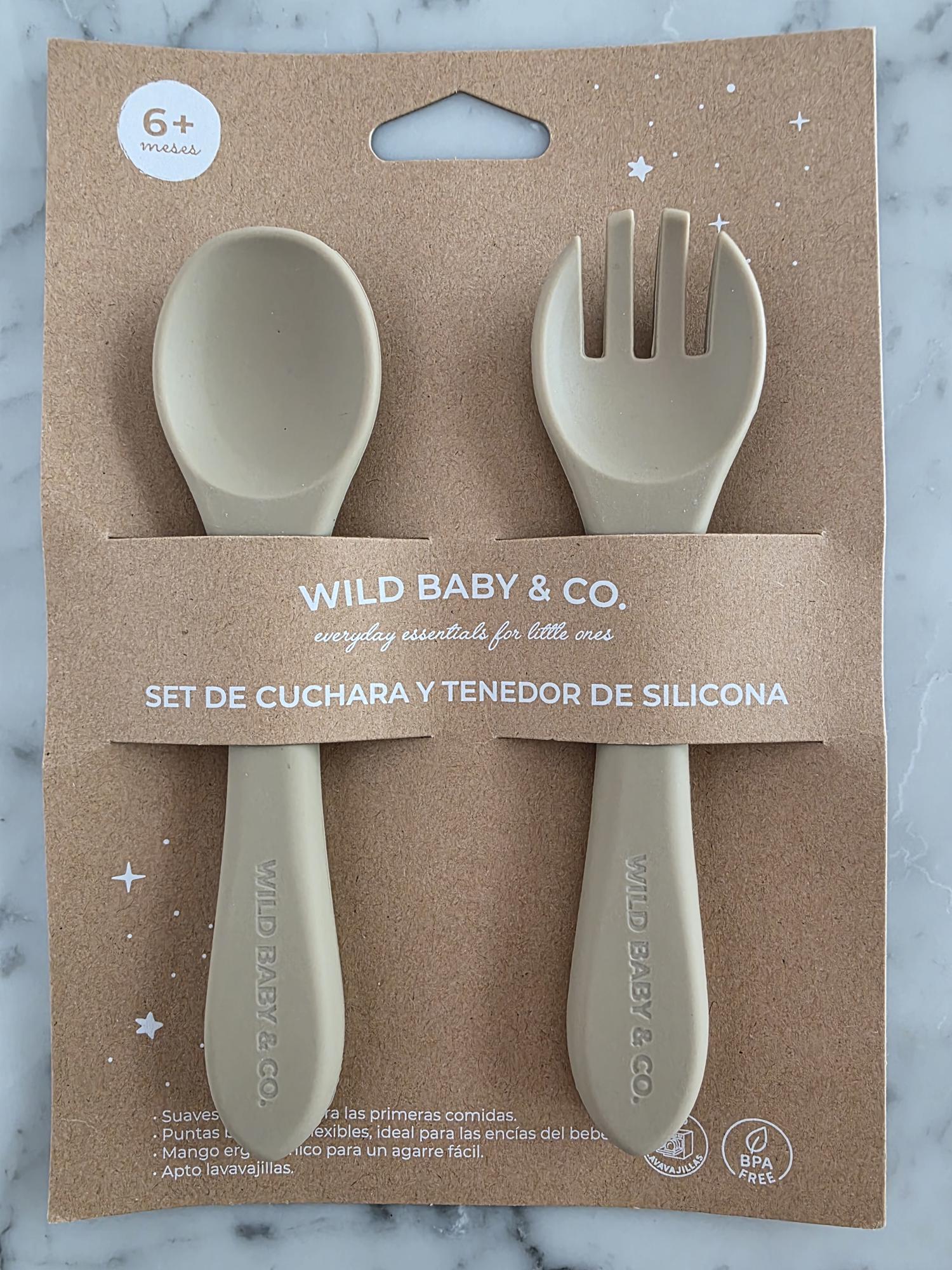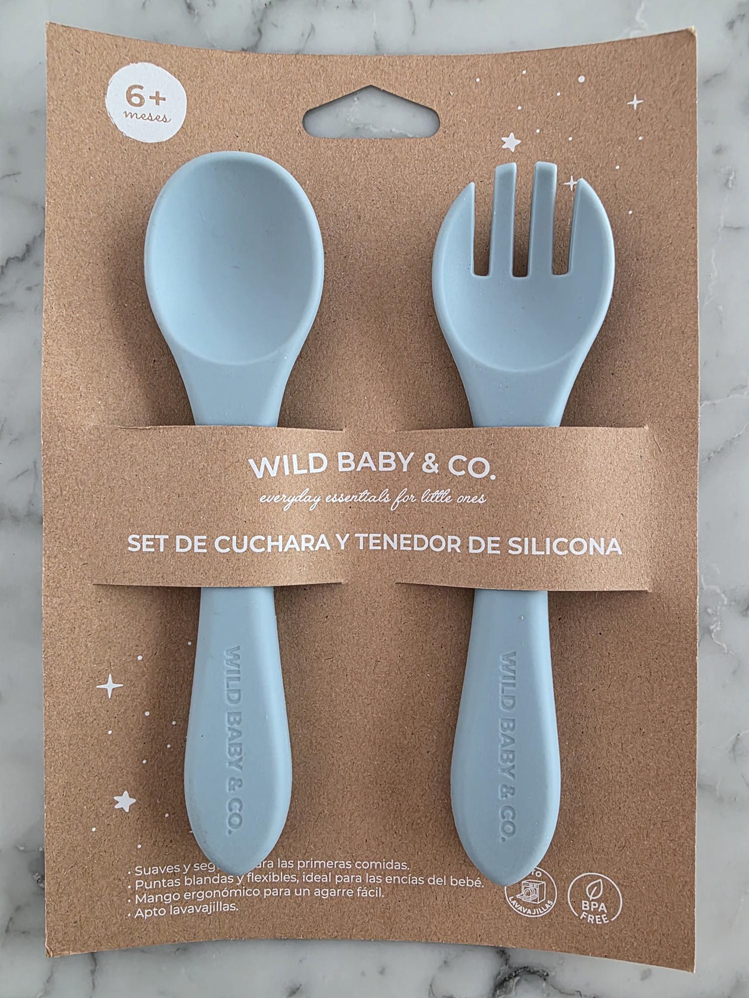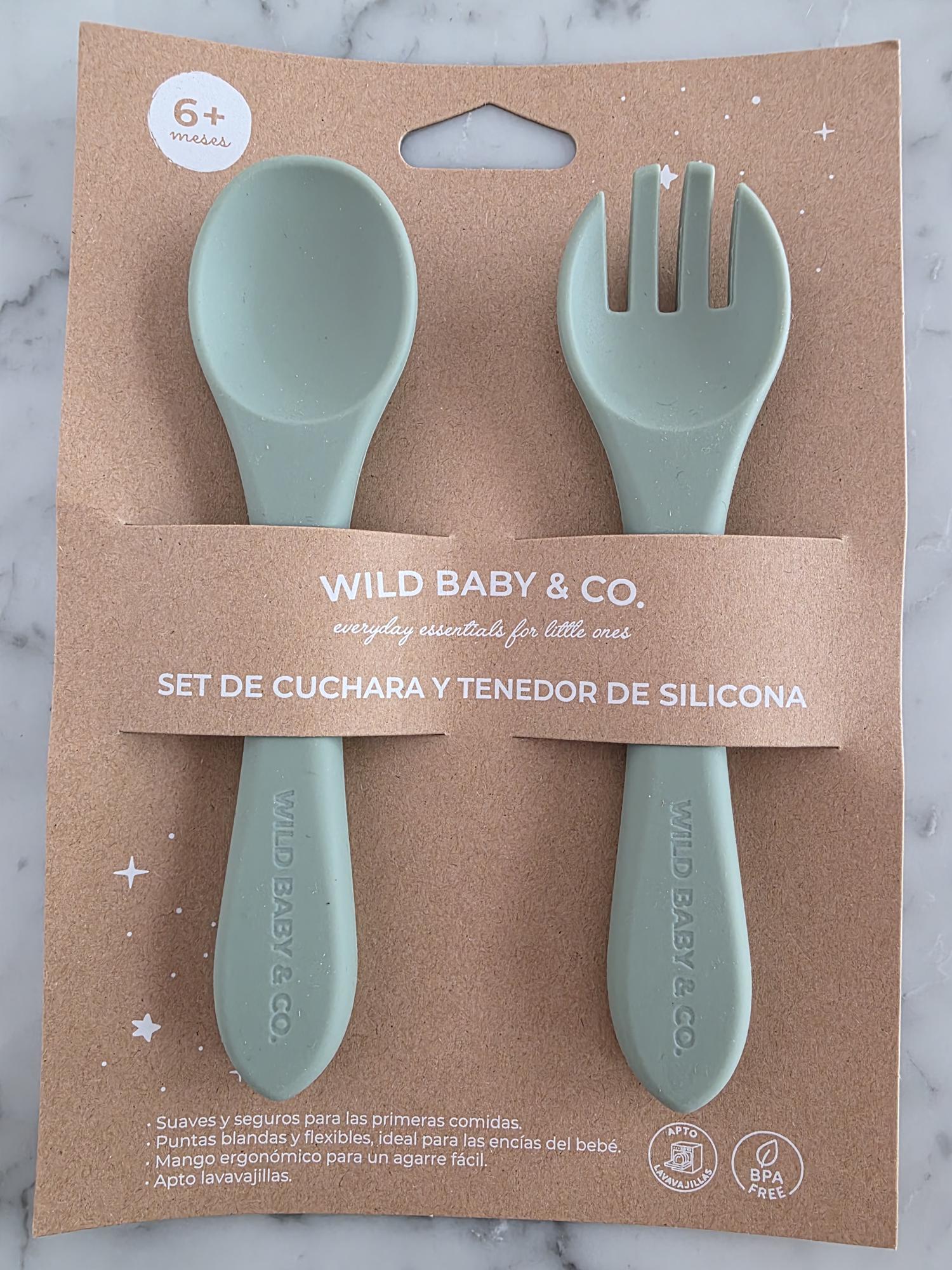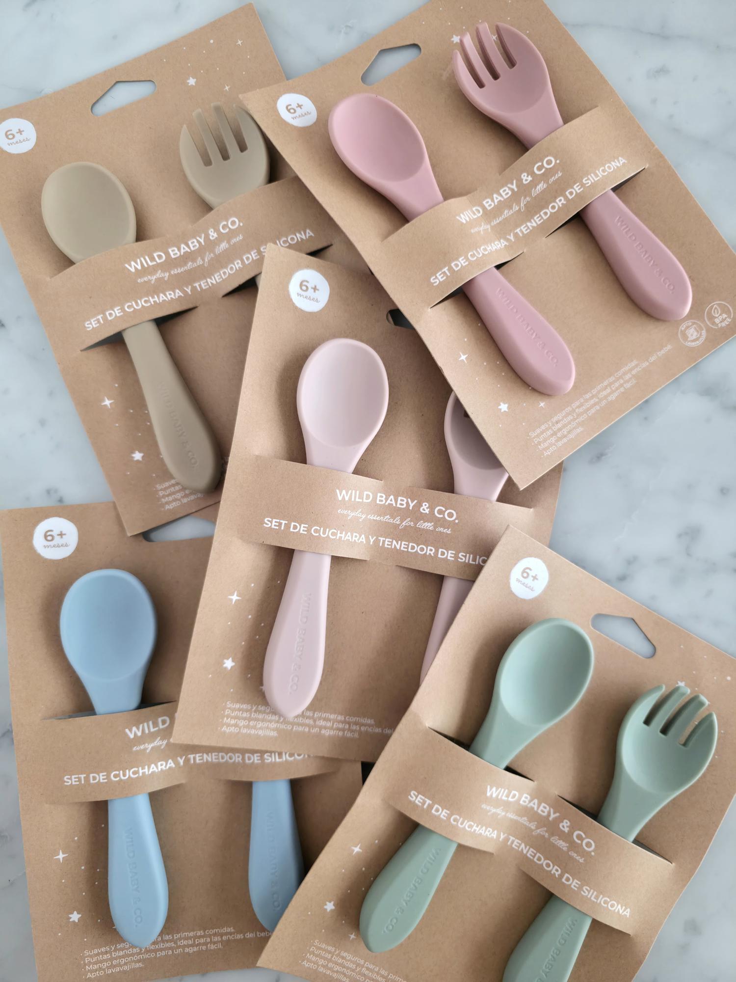 El set de cuchara y tenedor de silicona, perfecto para acompañar al bebé en sus primeras comidas y en el inicio de la alimentación autónoma. Ideal para método BLW.