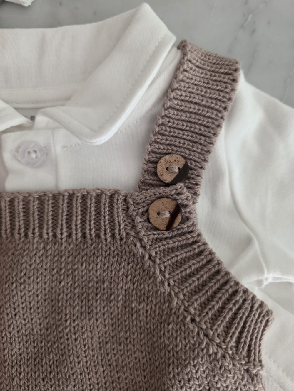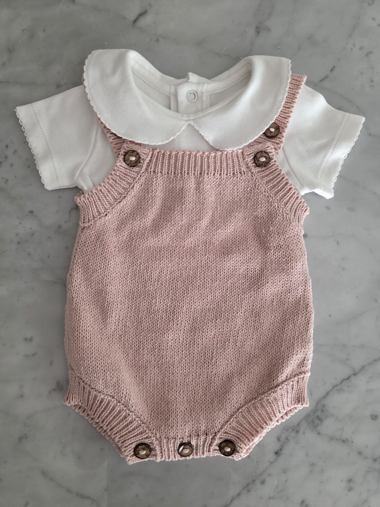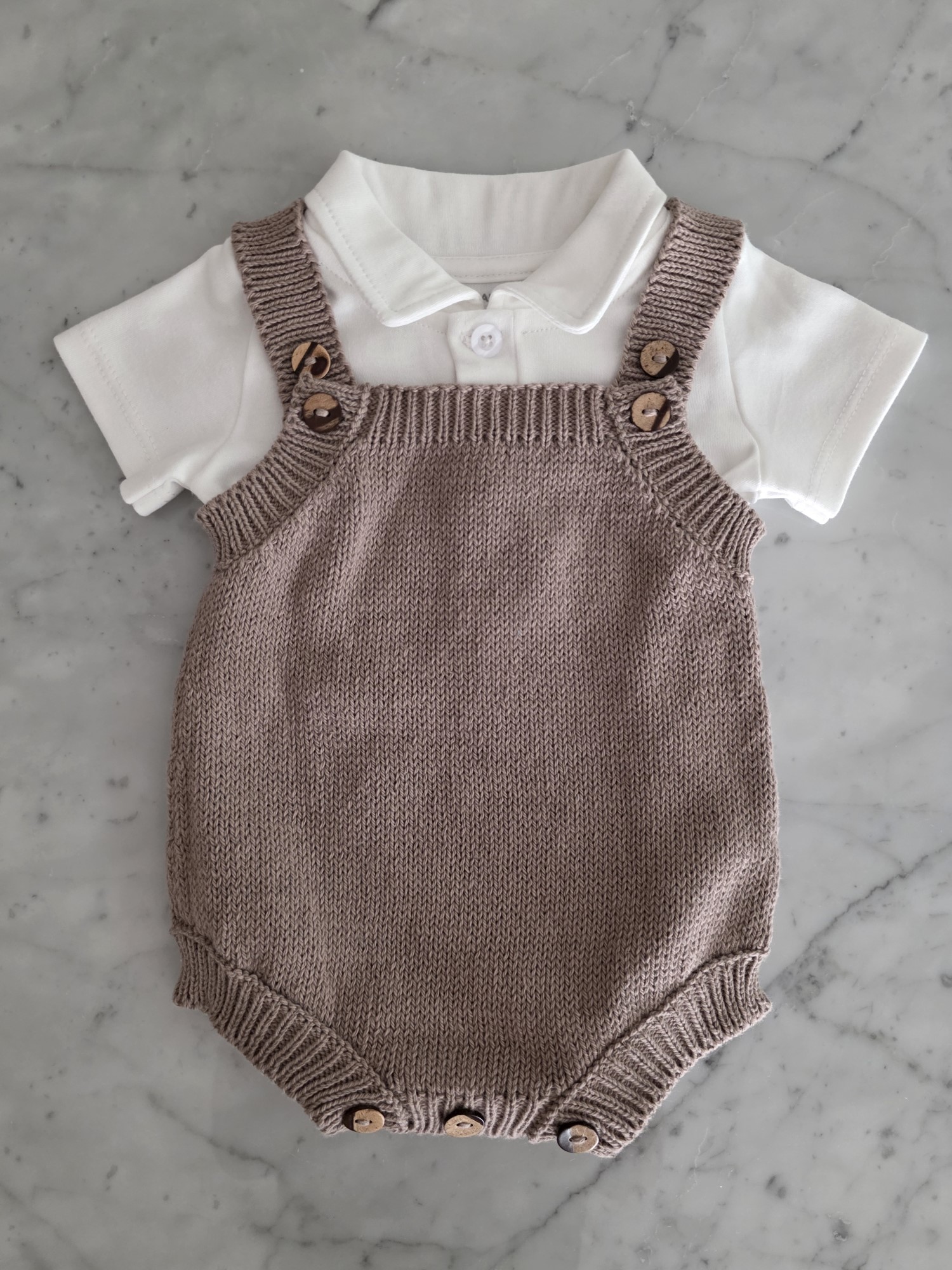 Este set exclusivo combina un body tejido en talle RN y un body de algodón en talle 1 mes, diseñados para acompañar con delicadeza la piel del recién nacido.