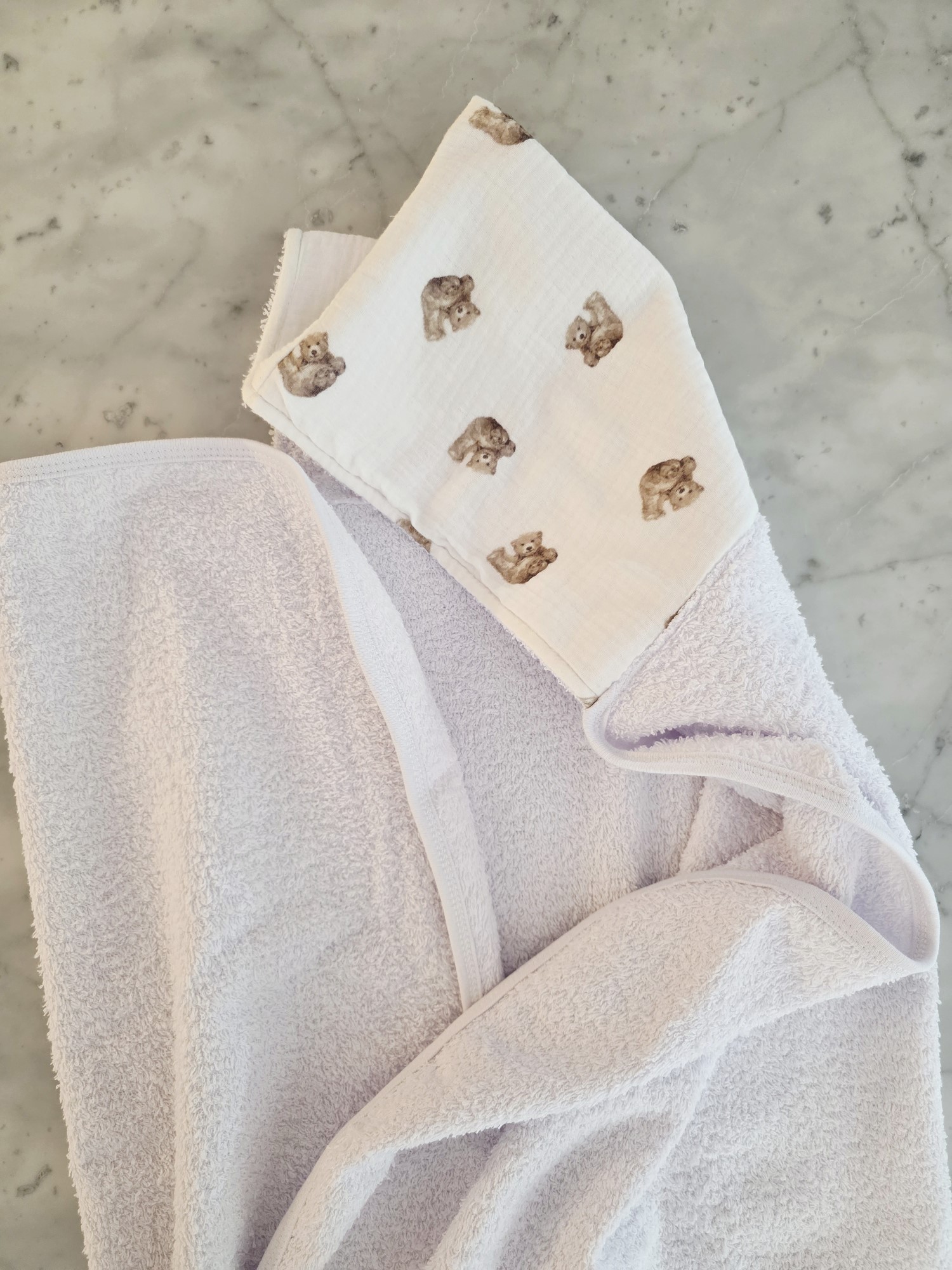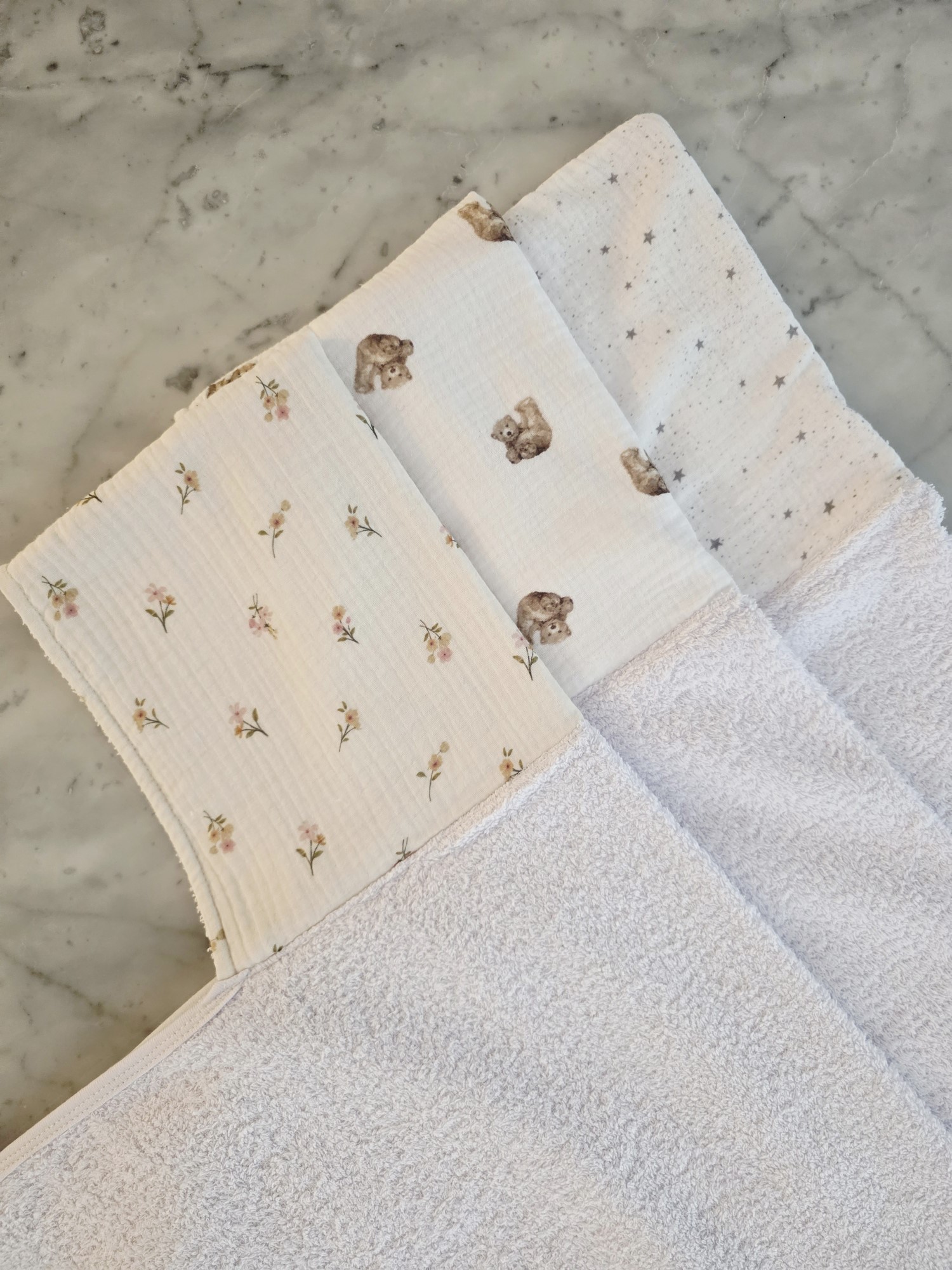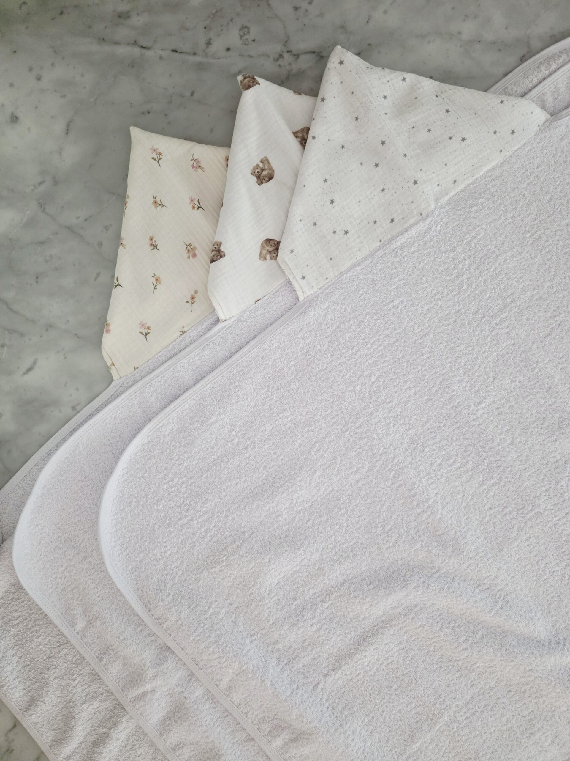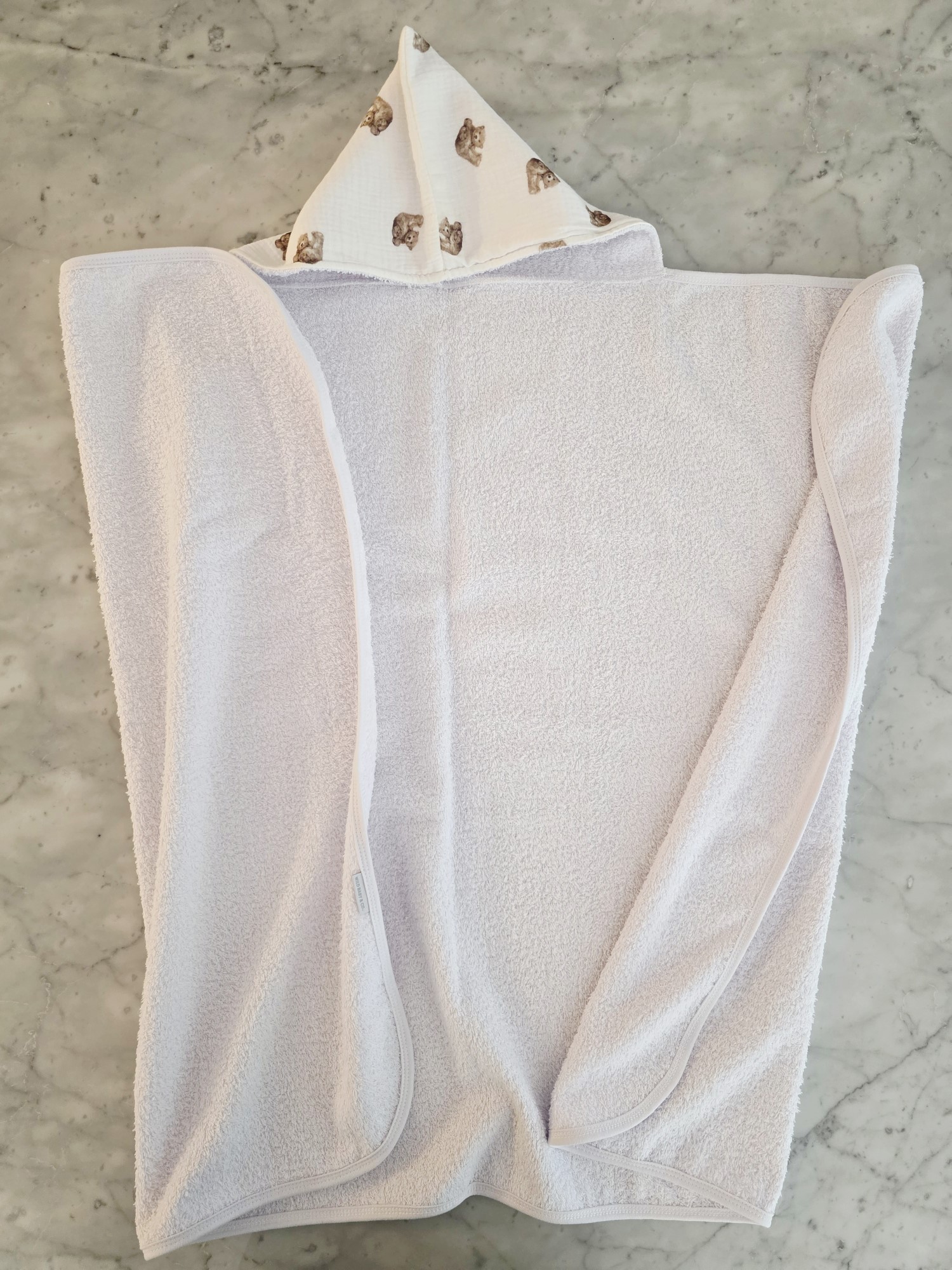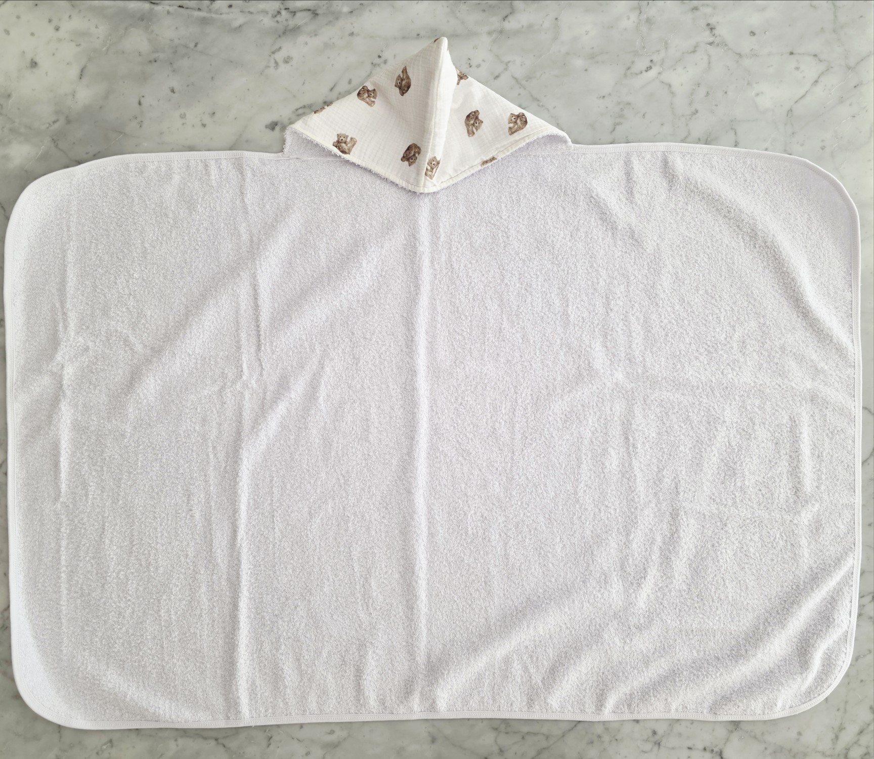 Hermosísimo toallón XL con capucha en algodón pima estampado.