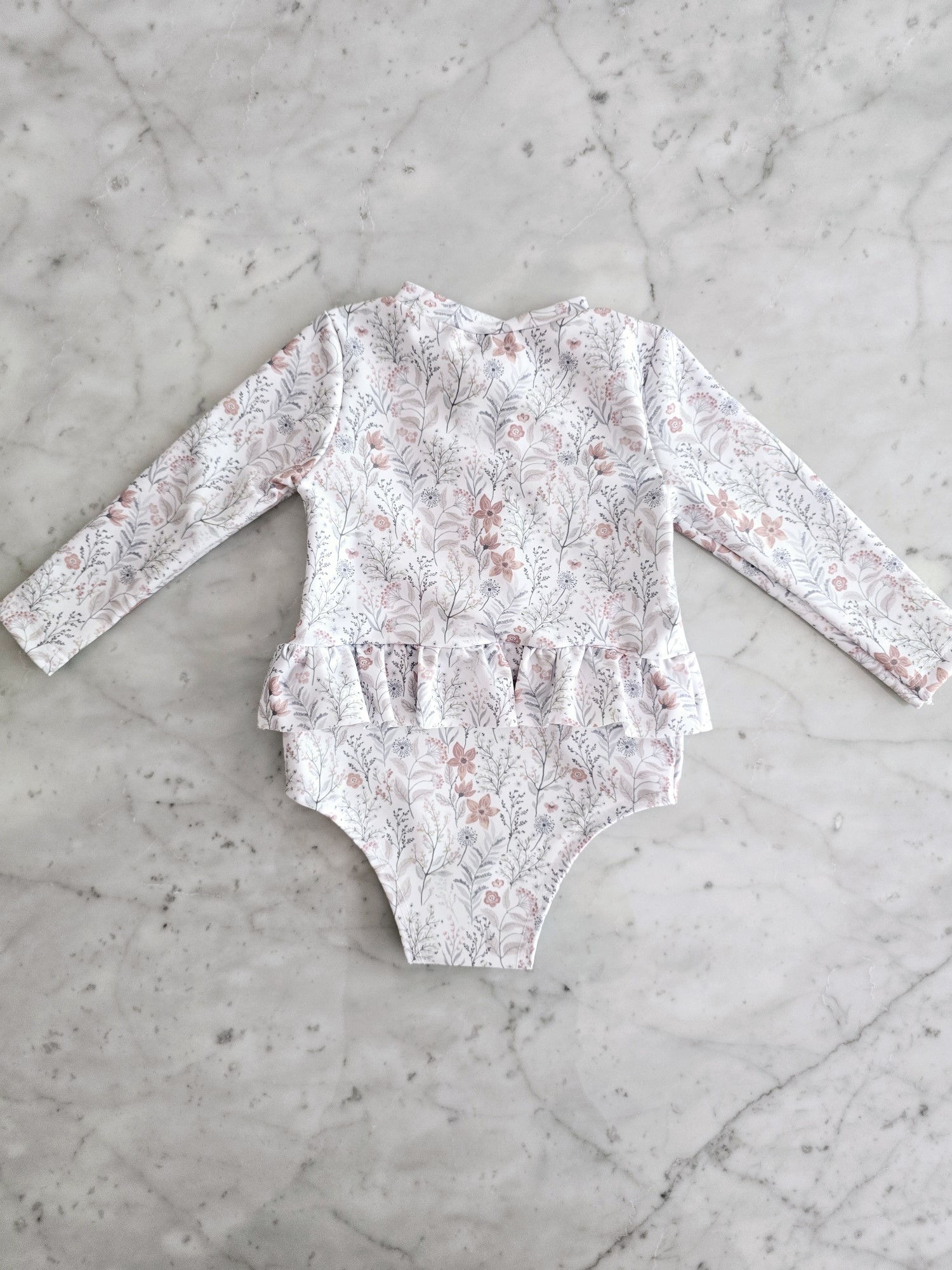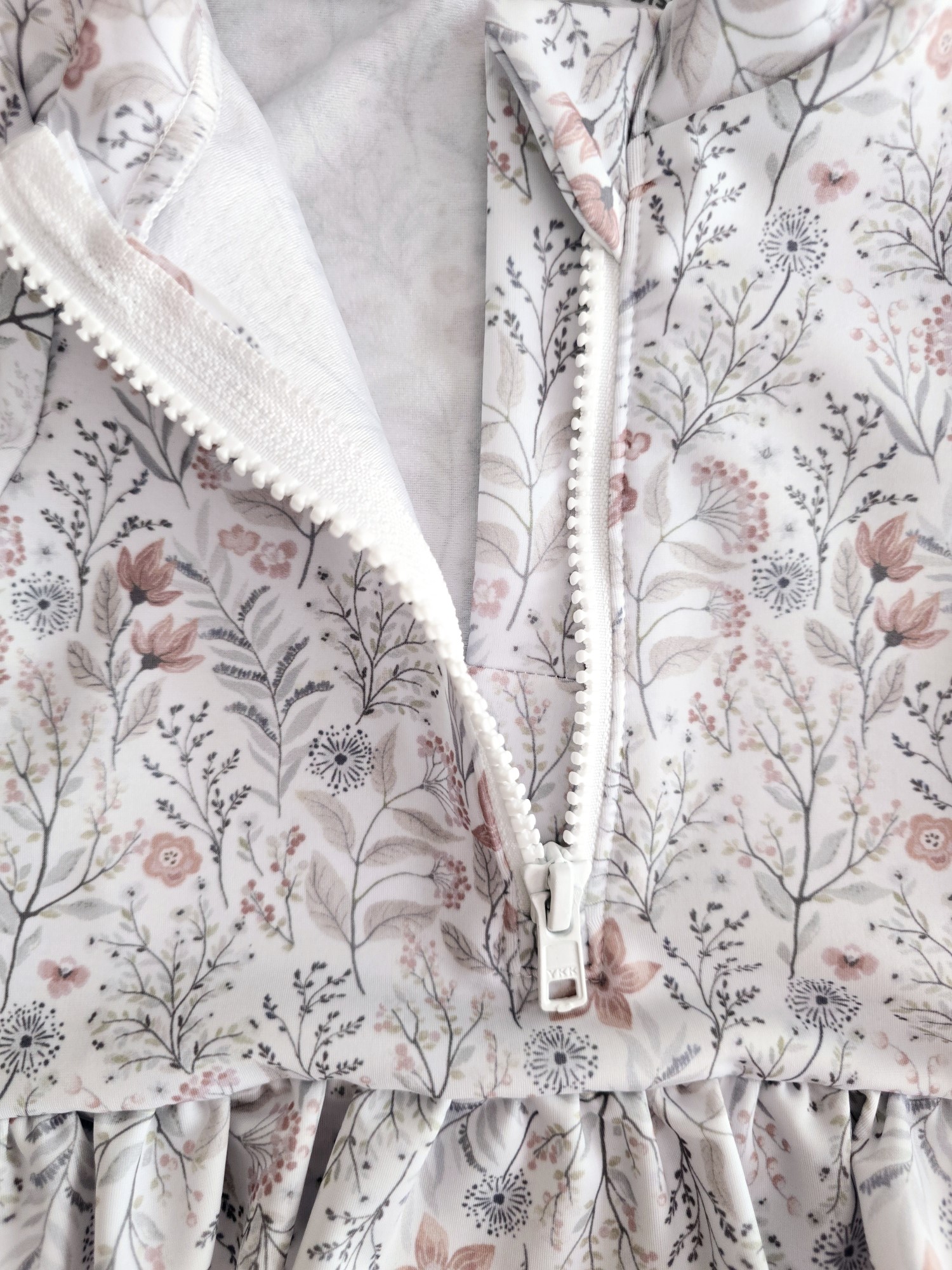Traje de baño de lycra con protección UV, ideal para la playa o la pileta. Modelo con cuello alto y cierre al frente para poner y sacar cómodamente.